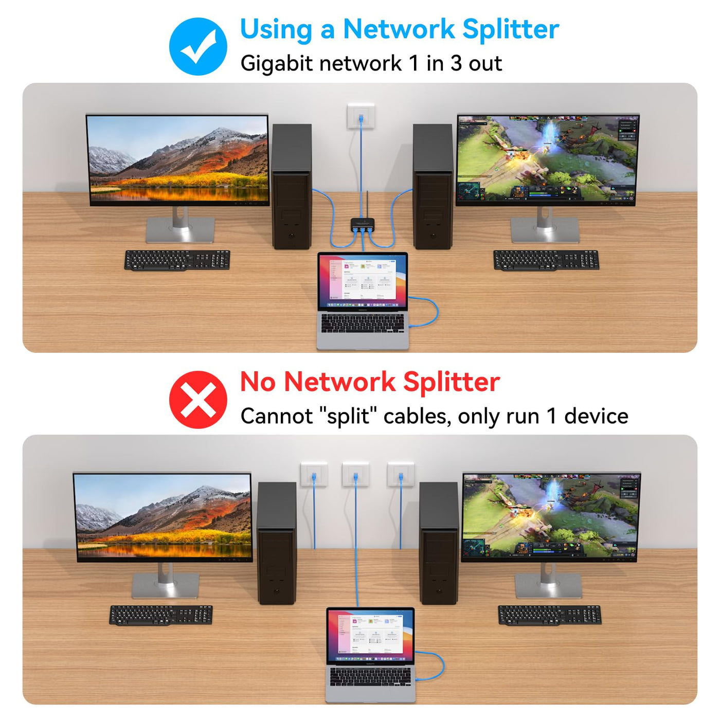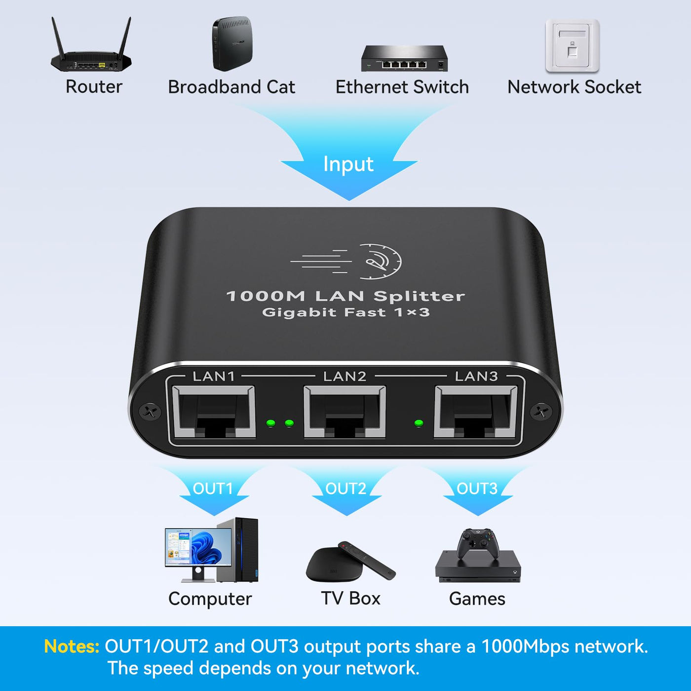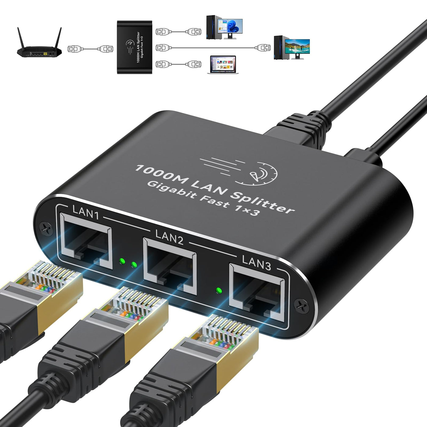 Ailvlvng Ethernet Splitter 1 To 3 1000Mbps Internet Splitter Lan Splitter Rj45 Either Network Splitter Adapter Supports High Spe