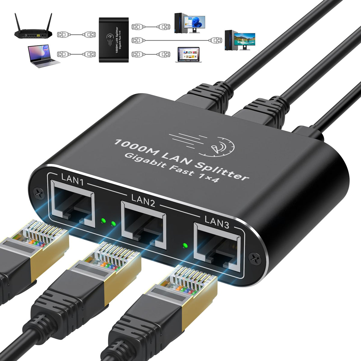 Ailvlvng Ethernet Splitter 1 To 4 1000Mbps Internet Splitter Lan Splitter Either Network Splitter With Usb Power Cable, High Spe