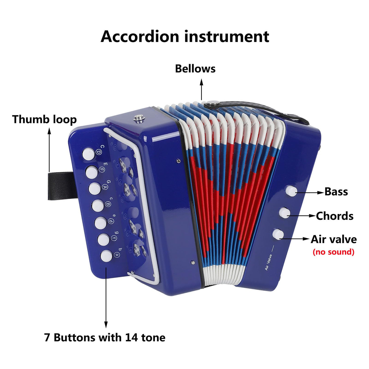 Aimeis Kids Accordion 10 Keys Button Accordian Musical Instrument Mini Accordion For Beginners (Blue)