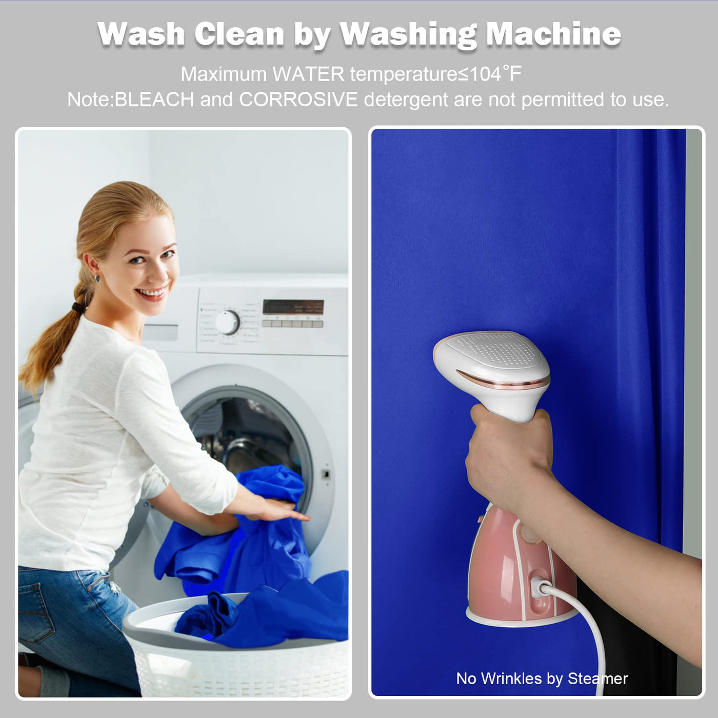 Q: Is the Aimosen backdrop machine washable?A: Yes, the Aimosen blue backdrop is machine washable and can be cleaned multiple times without fading. However, avoid using bleach or corrosive detergents, and ensure the maximum water temperature does not exceed 104℉.