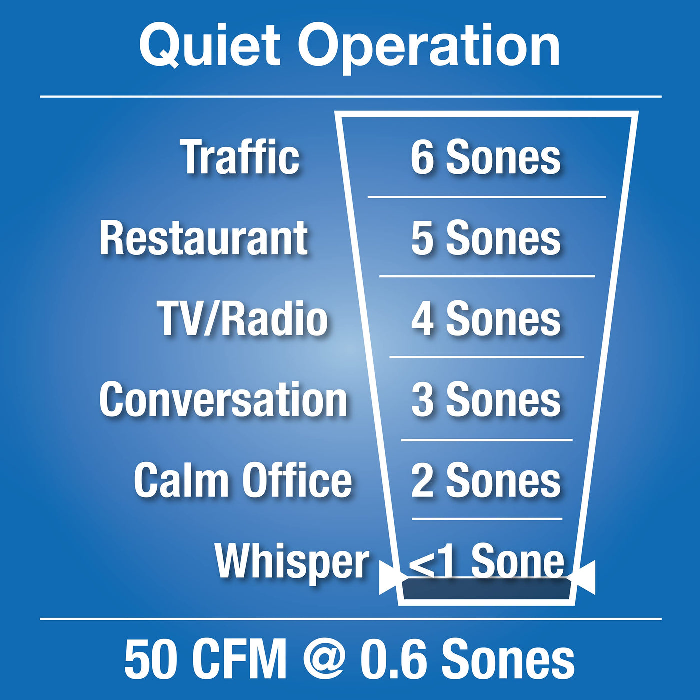 Q: How loud is the Air King BFQ50 exhaust fan?A: The Air King BFQ50 operates at a remarkably low noise level of 0.5 sones, making it one of the quietest exhaust fans available. This low noise operation ensures that your bathroom remains peaceful while effectively ventilating moisture and odors.
