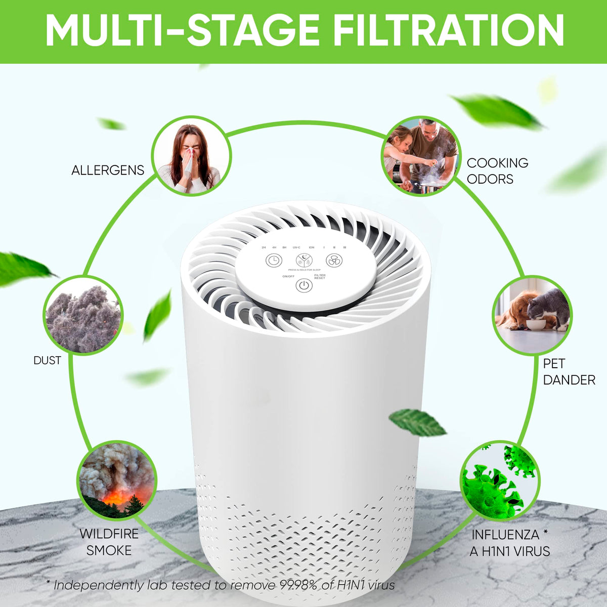 Never Experience Dirty Air Anymore With This Advanced System: This Air Purifying Machine Is Conveniently Compact While Also Offering Other Features That Boost Its Power And Practicality, Such As A Filter Change Indicator, Auto Timer Shutoff (2, 4, 8 Hours), Sleep Mode (Turns Off All Lights While Running), And Independent Uv Light And Ionizer Controls That Helps With Improving Your Air Quality Throughout The Day. Nothing Is Better Than Breathing Fresh And Clean Air: Whether You Need An Air Purifier For Protection Against Allergens And Smoke Or Just To Have Fresher Air, The Invisiclean Stella Air Purifier Can Significantly Enhance Your Life By Eliminating Allergens Like Pollen And Mold Spores And Providing Protection From Smoke And Other Sources. This Is The Best Air Purifier To Fit Your Needs! Perfect For Air Purifier For Home Bedrooms, Dorm, Baby Rooms, And Office Desktop.