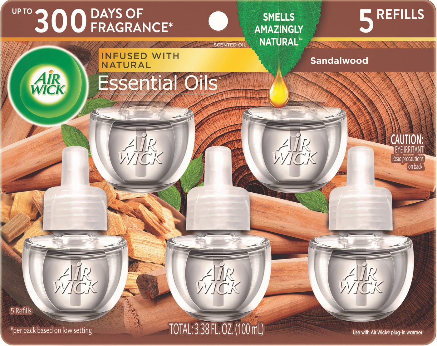 Air Wick Plug In Scented Oil Refill, 5 Ct, Sandalwood , Air Freshener, Essential Oils