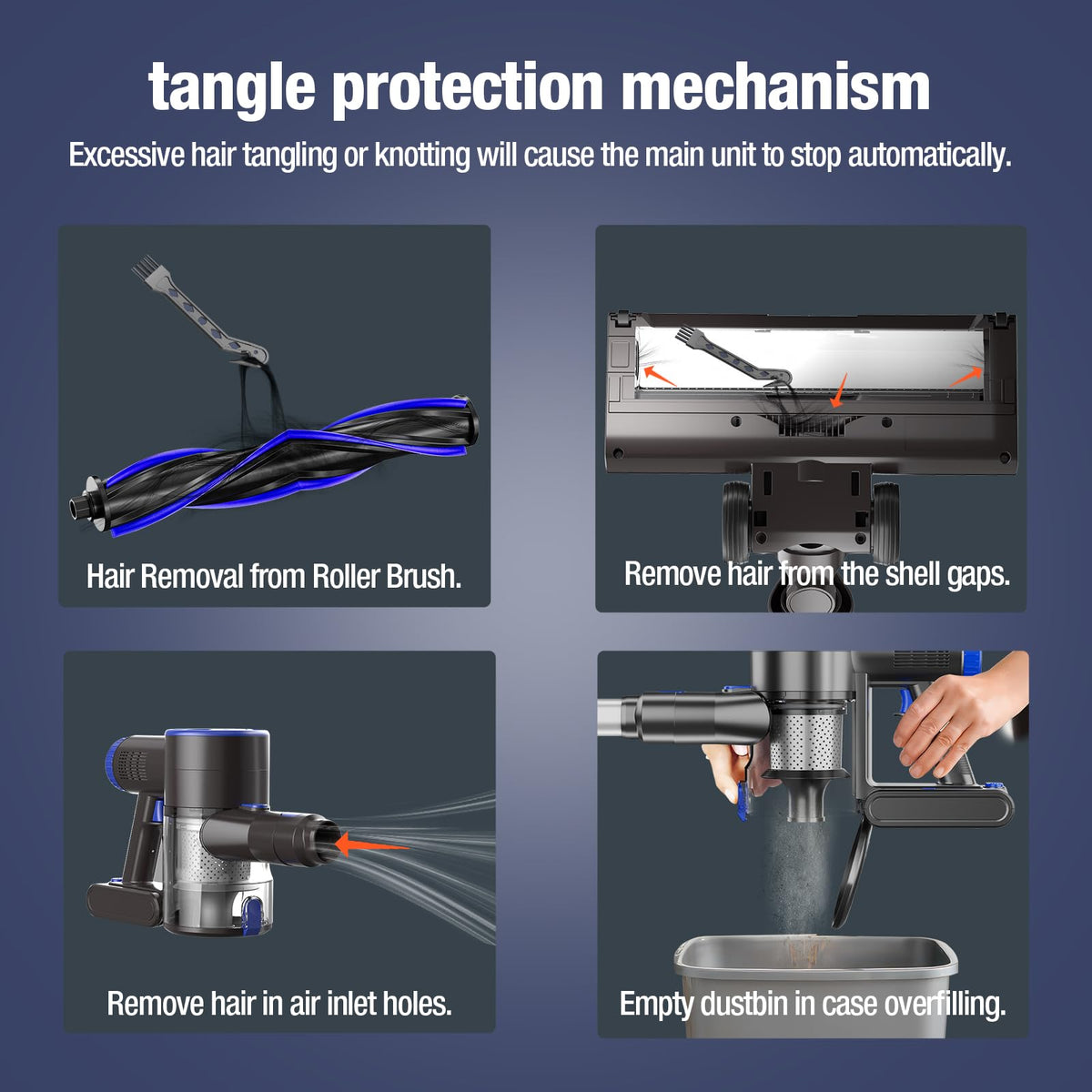 Q: What is the capacity of the dustbin in this vacuum cleaner?A: The AIRDIYA Cordless Vacuum Cleaner features a 0.6L dustbin capacity, which helps reduce the frequency of emptying during use. It also includes a one-button dust removal design for easy and sanitary disposal.