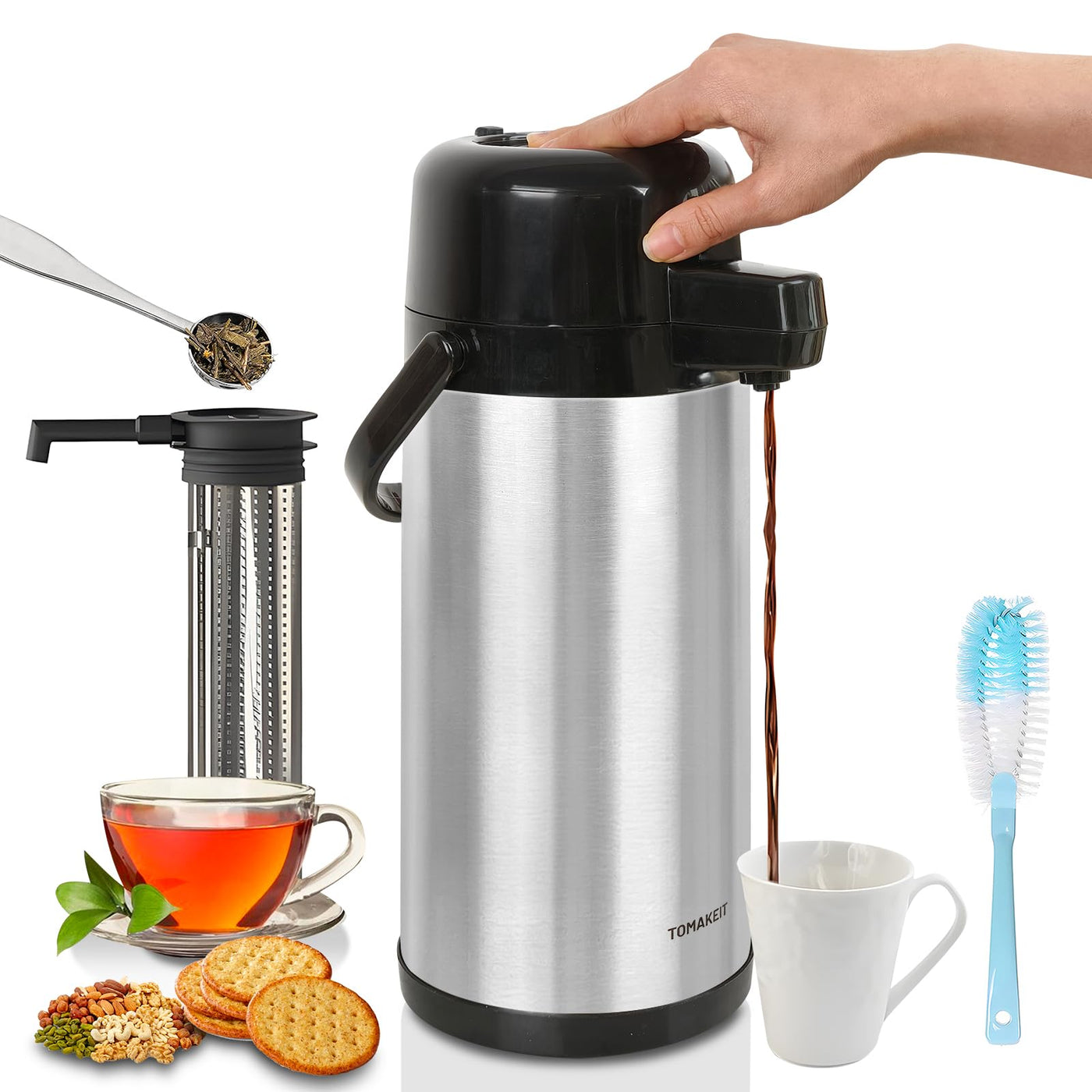 Airpot Coffee Dispenser With Pump,102 Oz/ 3L Large Coffee Dispenser With Tea Filter For Party Hot Drinks Water Tea Chocolate Hot/Cold Water, Insulated Stainless Steel Thermal Carafes