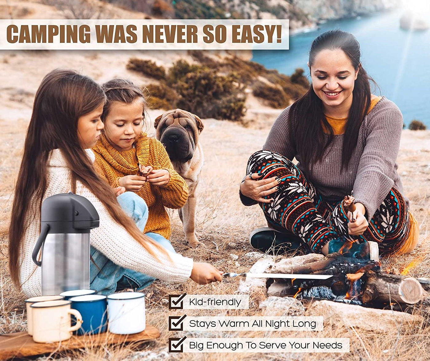 Q: Is the coffee dispenser easy to use for elderly or children?A: Yes, the pump-action top design allows for easy dispensing with just one press, making it safe and user-friendly for both the elderly and children without the need to lift or tilt the carafe.