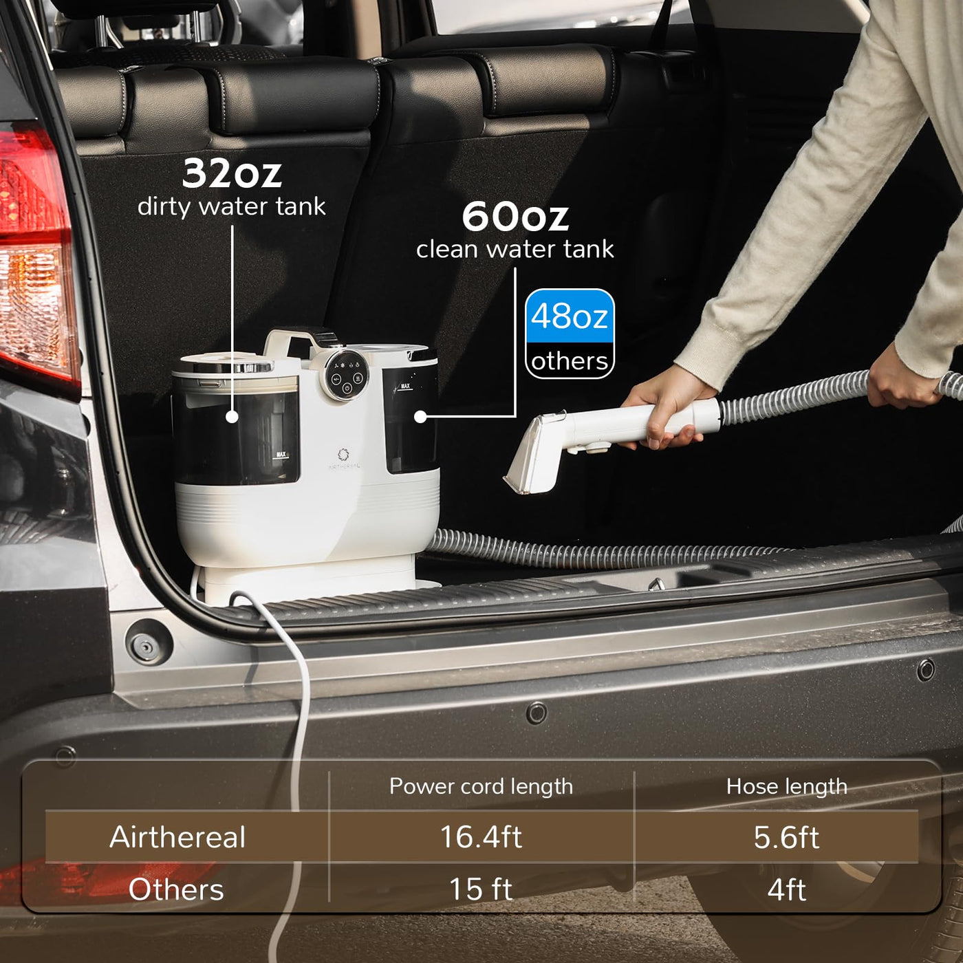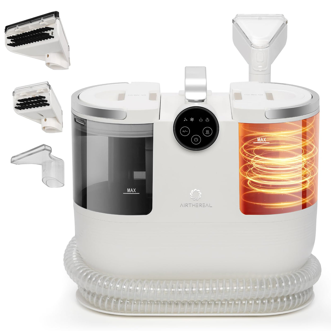 Instant Water Heating: Enjoy Immediate Cleaning Without Needing Pre-Heated Water, Setting Our Upholstery Cleaner Apart From Models That Require Water To Be Heated Before Use. Easily Refill Water At The Top Of The Tank For Added Convenience. | Extended Reach: Experience The Freedom Of Longer Power Cords And Hoses, Providing A Generous 22Ft Reach From The Power Outlet During Your Cleaning Sessions. Say Goodbye To Constant Machine Movement During Use. | Dual Suction Power Modes: Choose Between Two Suction Power Levels-An 8Kpa Standard Mode For Routine Cleaning And A Powerful 14Kpa Mode For Stubborn Stains. The 14Kpa Suction Power Ensures Deep Cleaning Up To 2 Inches Below The Surface. | Three Nozzle Options: Tailor Your Cleaning Experience With Three Nozzle Shapes, Allowing You To Tackle Various Environments And Upholstery Types. Reach Even The Tightest, Hard-To-Clean Areas With Precision. | Easy Maintenance: Our Cleaner Is Designed For Hassle-Free Upkeep, Featuring Detachable Water Hoses And Suction Nozzles, Along With A Fully-Removable Lid On The Dirty Water Tank For Effortless Emptying.