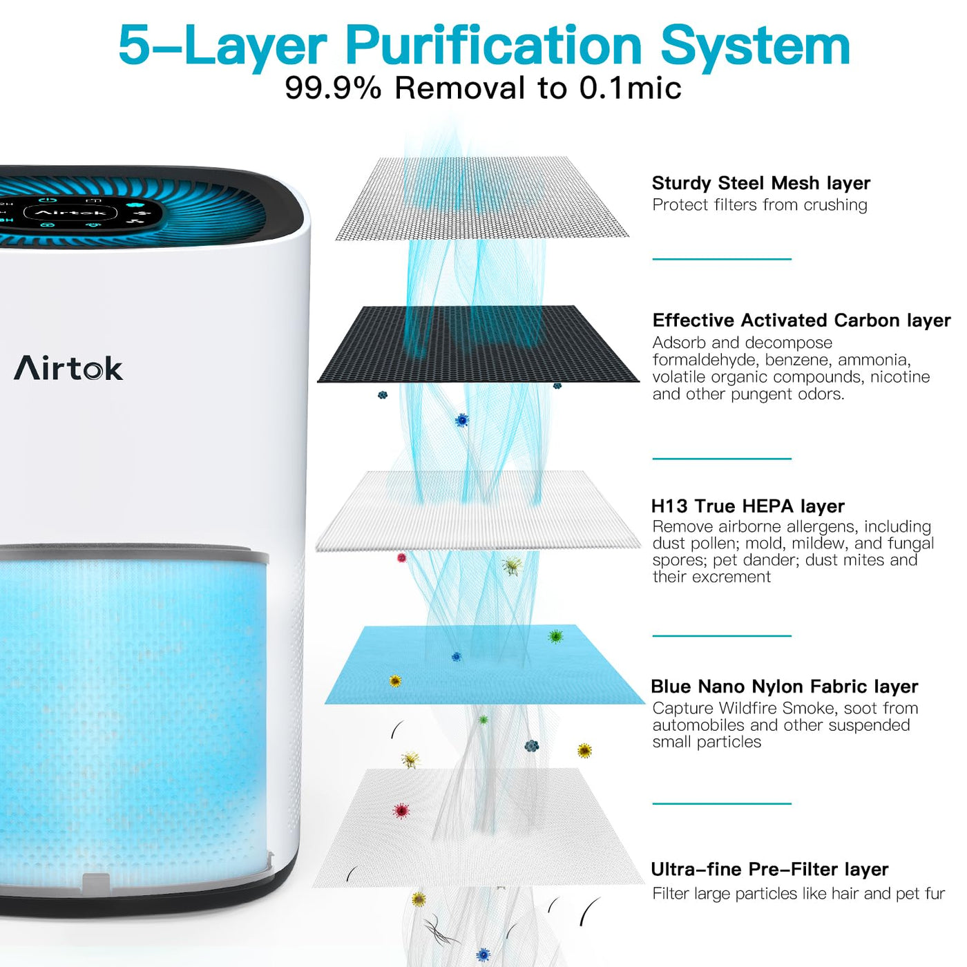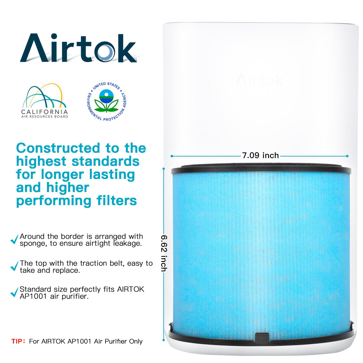 Authentic Airtok Filters: Off-Brand Filters Are Inconsistent, Unreliable, And May Damage The Air Purifier It Is Highly Recommended To Use This Officially Designated Replacement Filter (Ap1001-Rf) To Keep Your Ap1001 Air Purifier At Its Best Working Efficiency And Capacity 5-Layer Filtration System: Ultra-Fine Pre-Filter Layer+ Blue Nano Nylon Layer+H13 True Hepa Layer+Activated Carbon Layer+Sturdy Steel Mesh Layer Easy Replacement Filter: The Filter Is Easy To Be Replaced And Disposed Without Any Tool Required, Ensuring You To Replace Your Old Filter In Minutes Full Satisfaction : Filters Are Sealed To Protect Their Lifetime Please Remove The Plastic Packaging Of The New Filters Before Placing Them Into Air Purifier