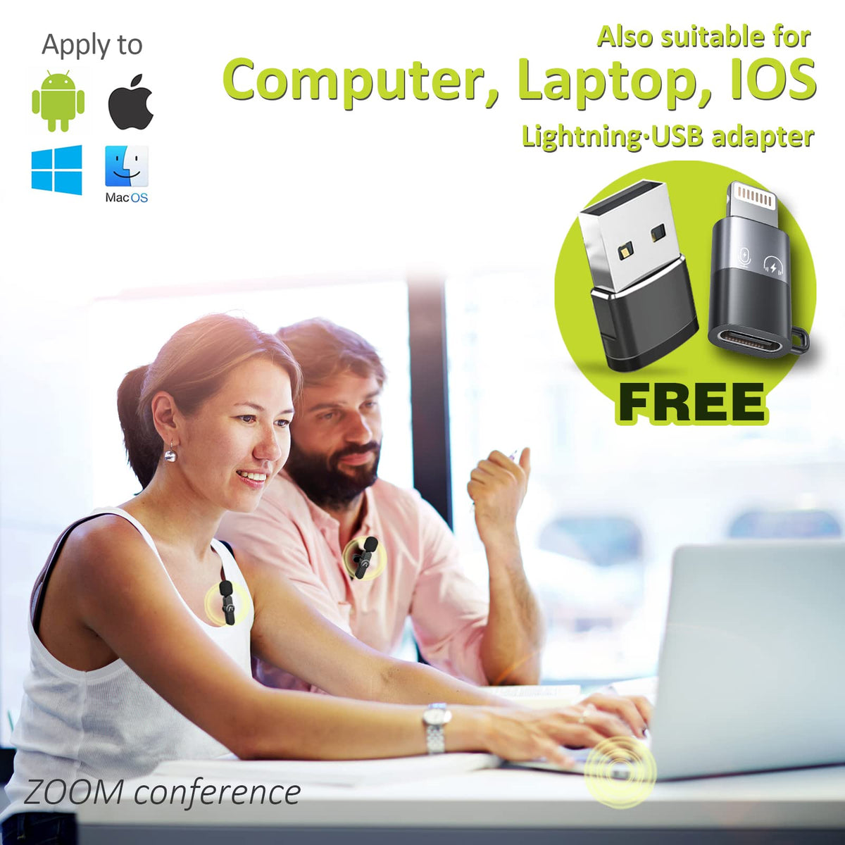 Aisizon Wireless Mics, Wireless Clip On Microphones, Lapel Microphone A2D One Pair Two, For Android Phone, Iphone 15, Laptop, Vi