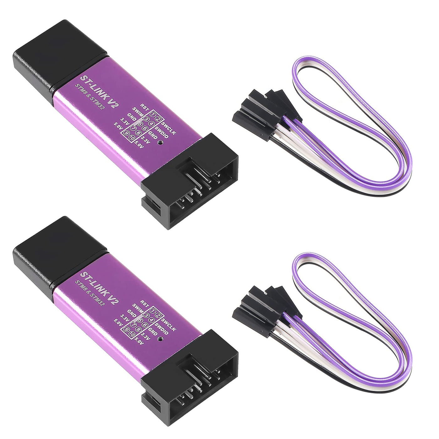 Q: What is included in the package when I purchase the ST-Link V2?A: The package includes 2 pieces of the V2 Emulator Downloader Programmer, which supports both STM8 and STM32, along with 2 DuPont lines for easier connections. Note that the color of the units is random.