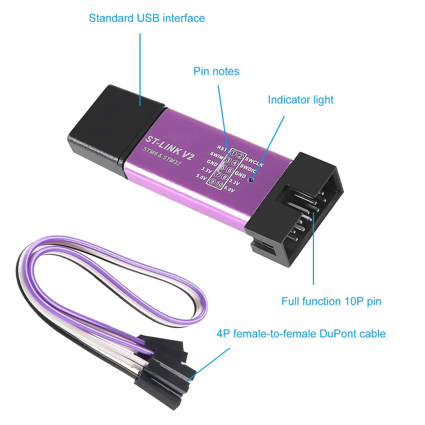 Q: Can I use the ST-Link V2 with both 5V and 3.3V systems?A: Absolutely! The ST-Link V2 supports both 5V and 3.3V power outputs. This versatility makes it suitable for a wide range of microcontroller applications while also protecting I/O ports from operational errors.