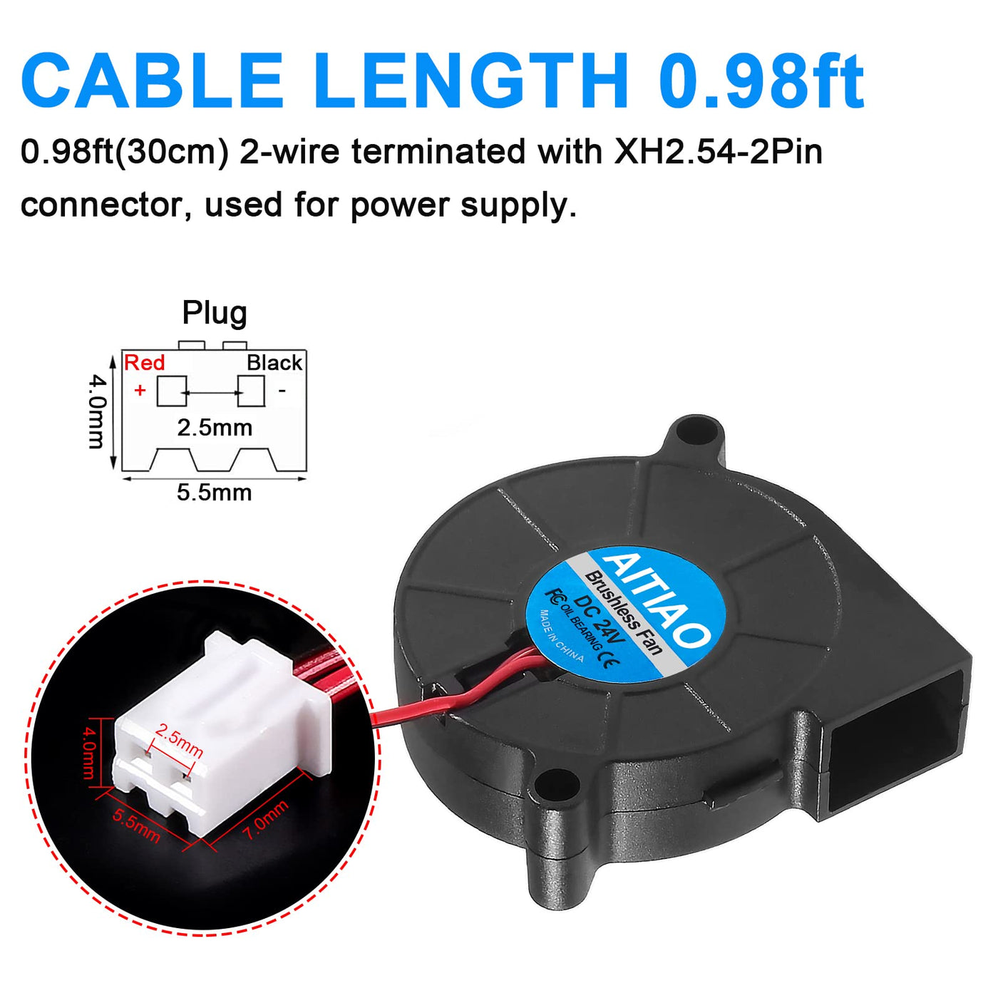 Q: What is the voltage and current rating of the AITIAO 5015 Blower Cooling Fan?A: The AITIAO 5015 Blower Cooling Fan operates at a voltage of DC 24V with a working current of 0.1 A.