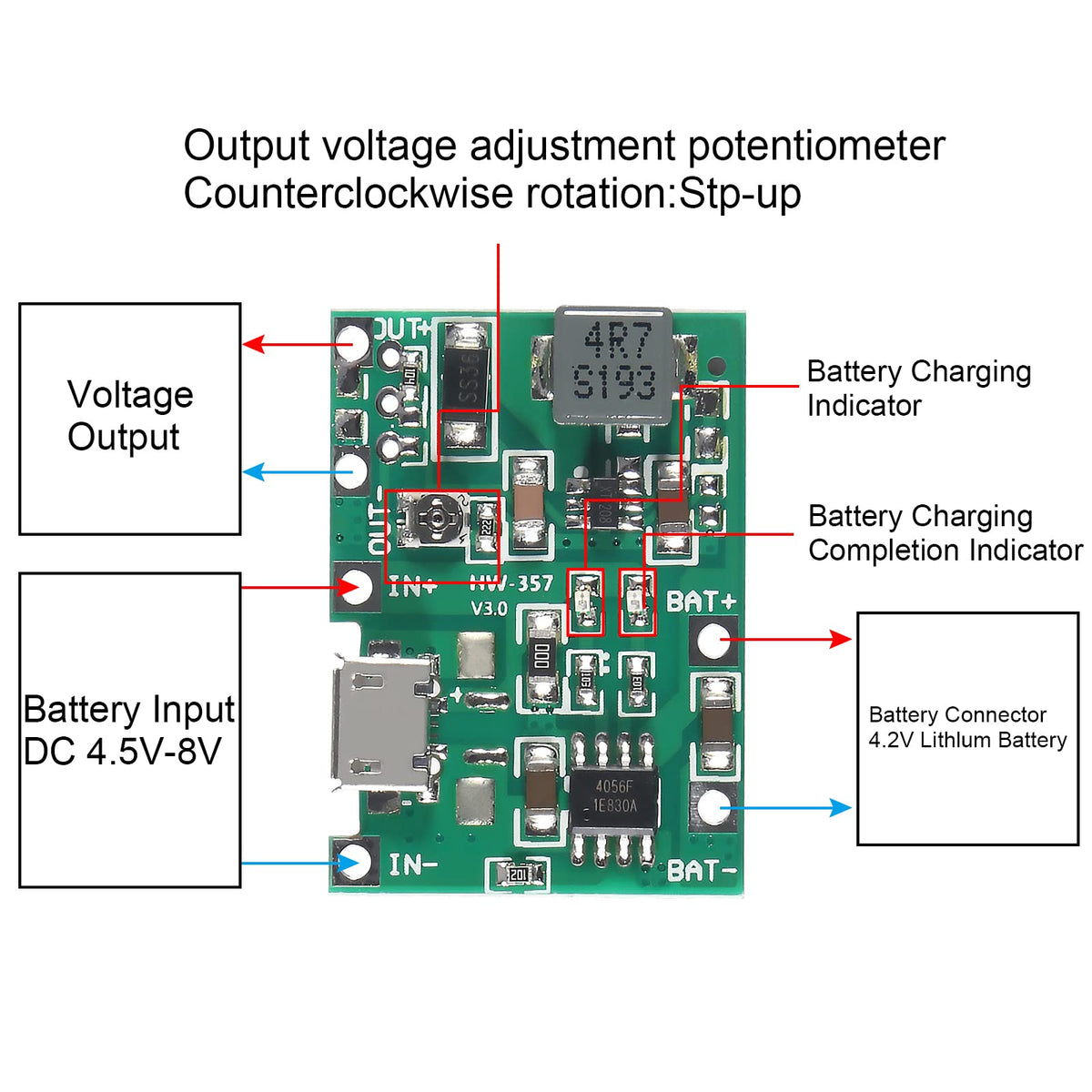 Q: Is there any protection mechanism in place for this charger module?A: Yes, the module includes overshoot protection and has a cut-off boost feature at 2V, ensuring safe operation during use.