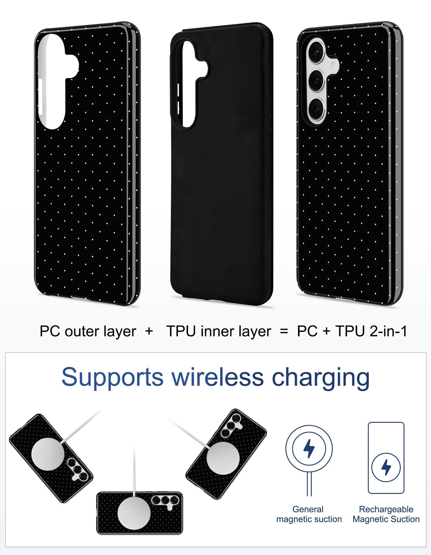 Aitipy Compatible With Magsafe Polka Dot Phone Case For Samsung Galaxy S25, Cute Aesthetic Polka Dot Magnetic Soft Tpu And Hard Pc Protective Phone Cover For Women Girls - Black