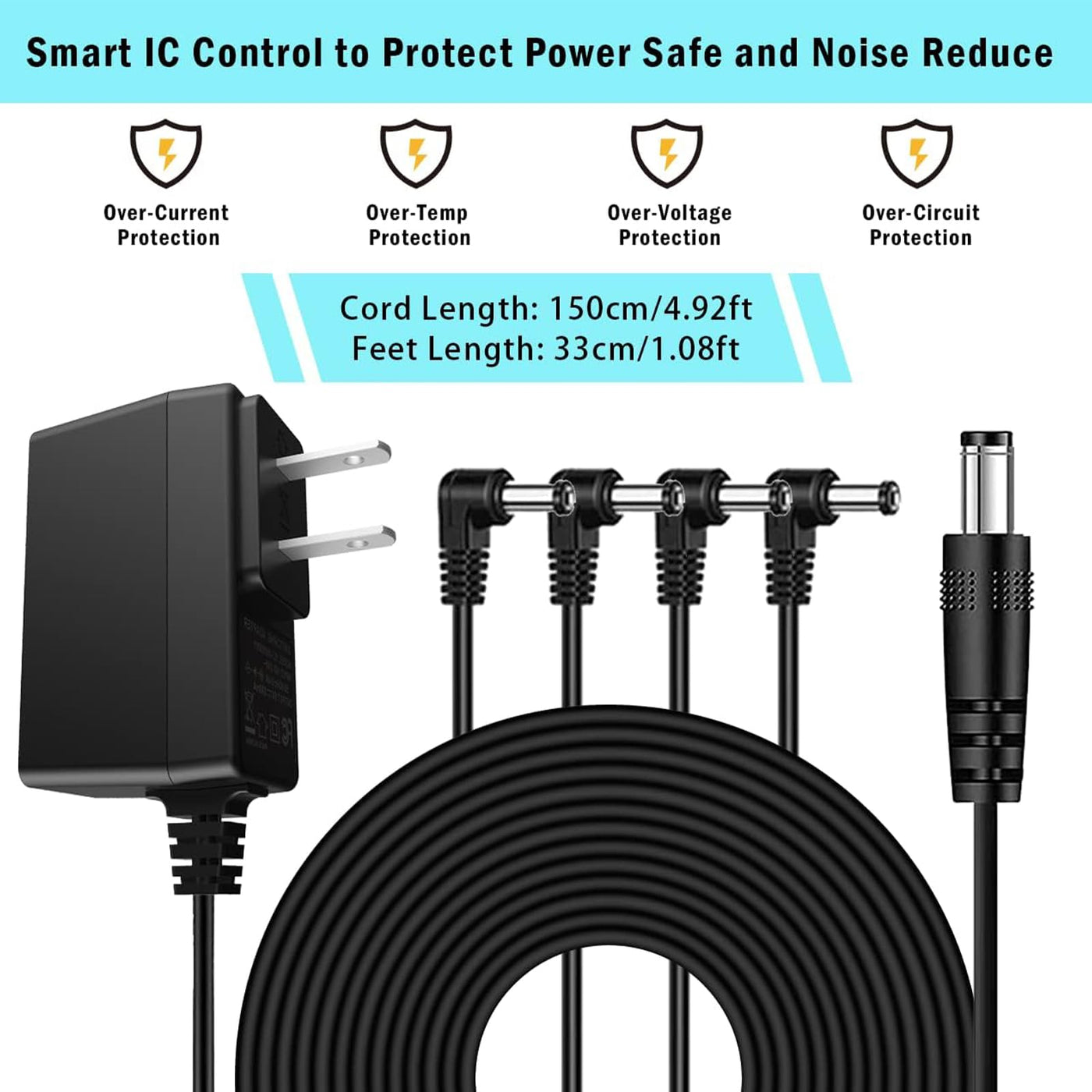 Aitone Dc 9V Guitar Pedal Power Supply Ac Adapter With 4 Way Daisy Chain Power Cord Cables For Pedal Keyboard Tip Negative 800Ma