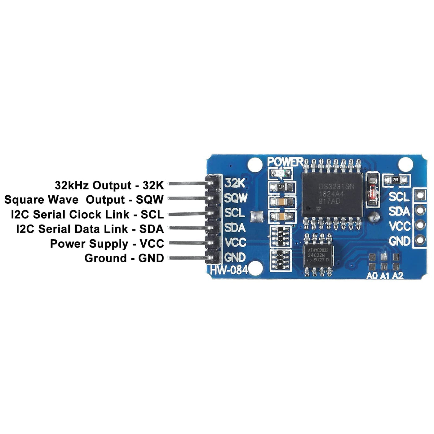 Q: What is the accuracy of the DS3231 Real Time Clock module?A: The DS3231 Real Time Clock module offers a high precision clock accuracy of 2 parts per million (ppm) within a temperature range of 0 to 40 degrees Celsius, which results in an error of approximately 1 minute per year.