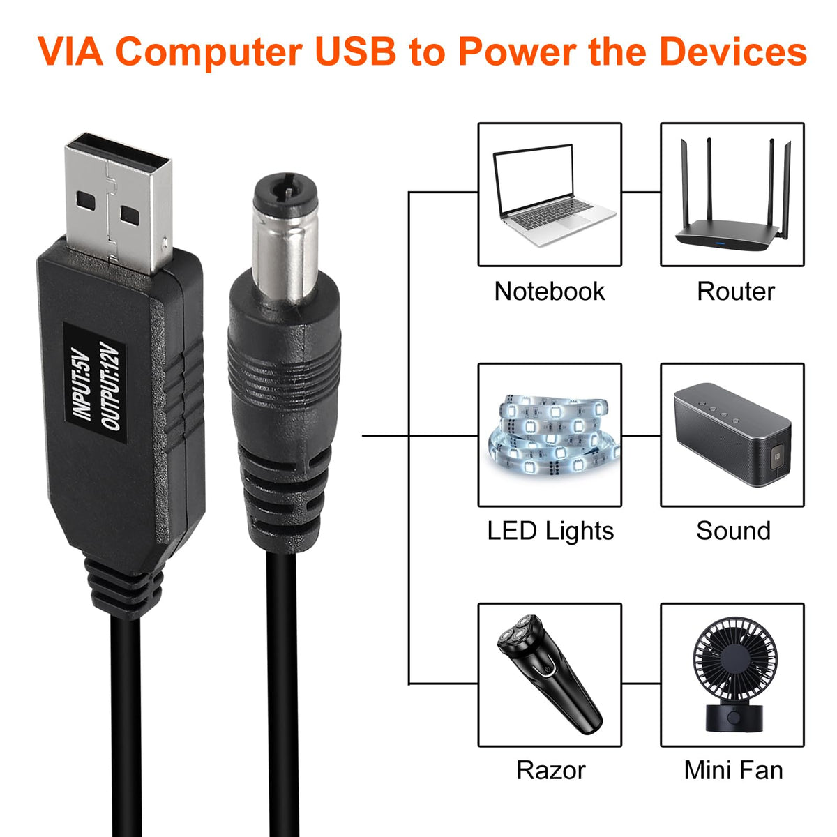 Package:1Pcs Usb To Dc Power Cable 5V To 12V Boost Converter With 1Pcs 8 Adapters Usb To Dc Jack Charging Cable