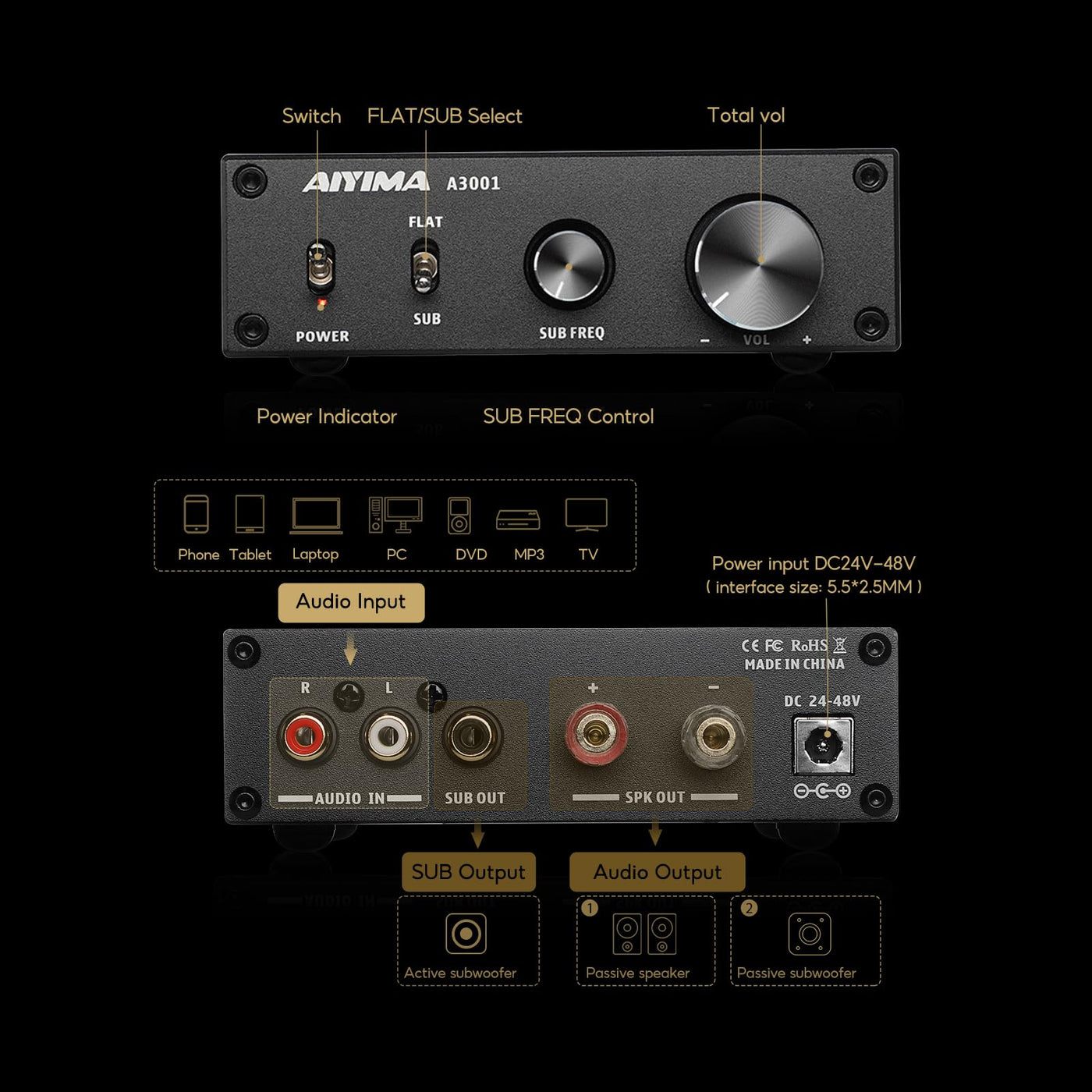 Aiyima A3001 Mini Mono Amp 300W Subwoofer Amplifier Tpa3255 Class D Amp With Full-Frequency & Sub Bass Home Audio Speaker Amp+ D