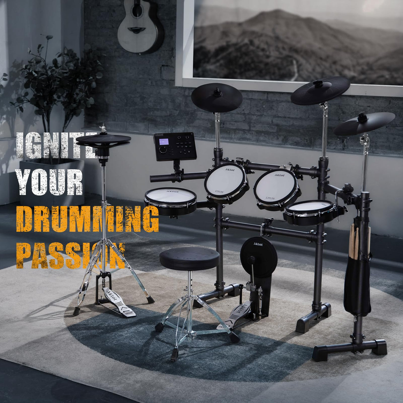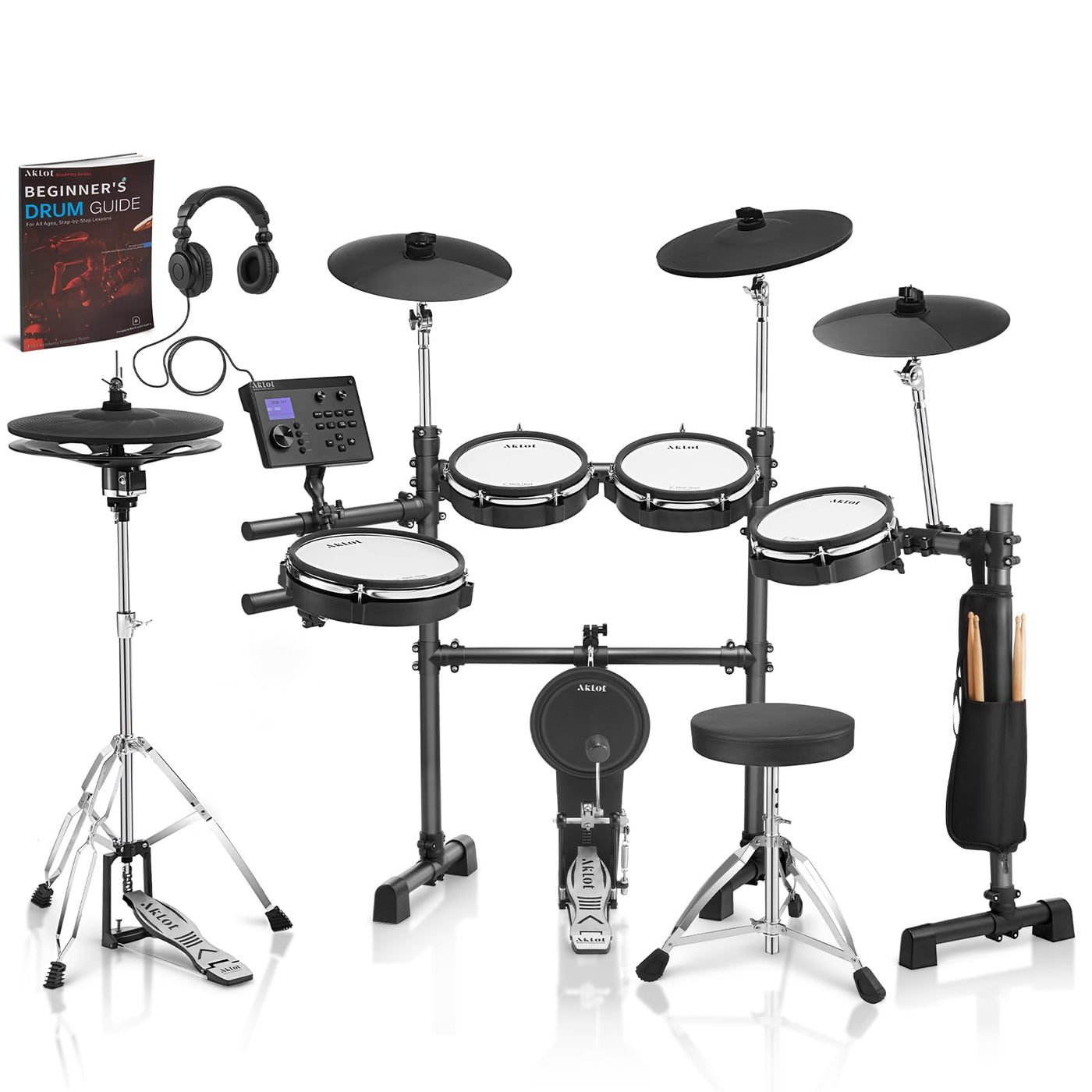 Aklot Expanded-Size Electric Drum Set: 12 Two-Piece Standalone Hi-Hat, Independent Kick Drum And 10 Dual-Zone Snare, 12 Tr