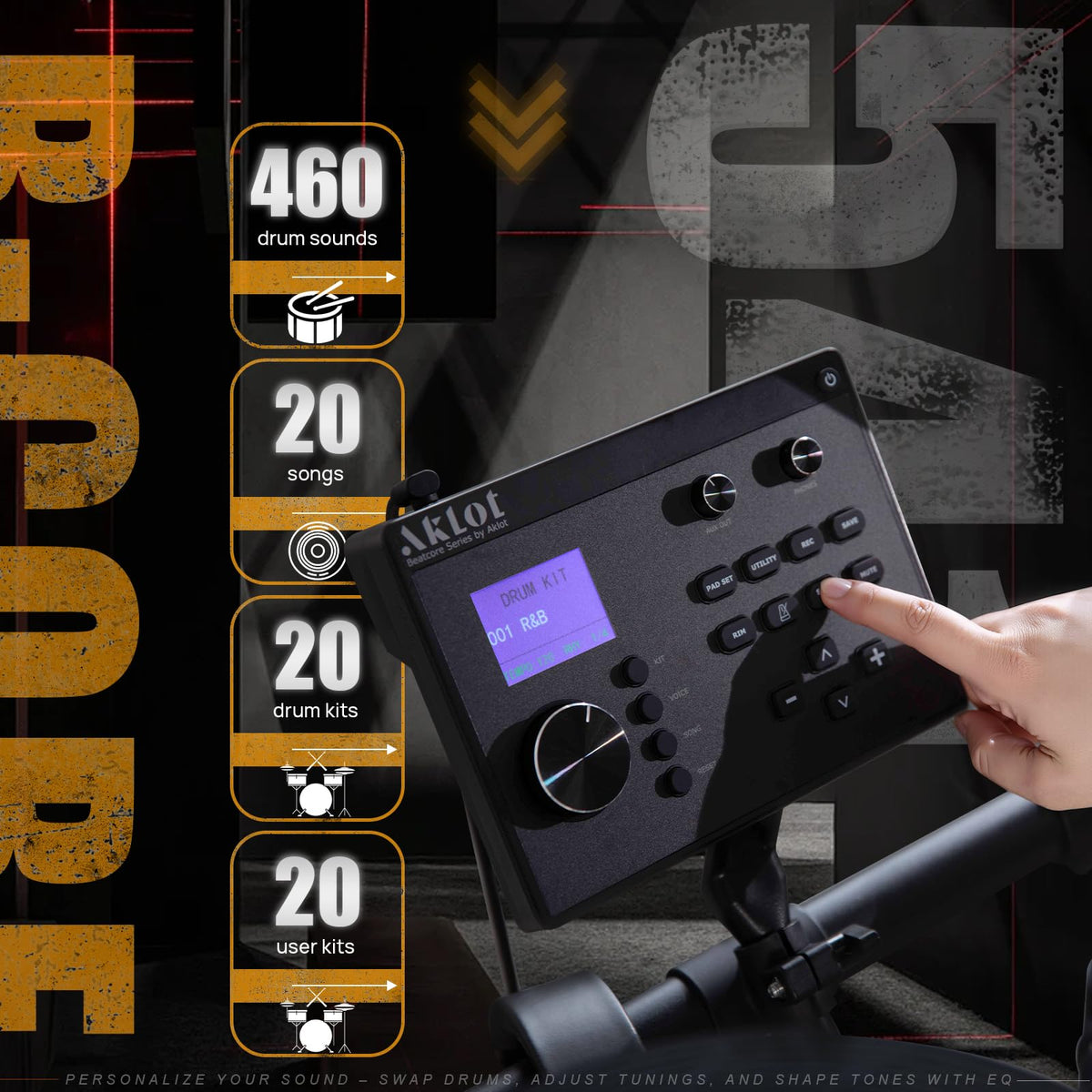 Aklot B-Core541 Expanded-Size Electric Drum Set Elevate Your Drumming Experience With The Aklot B-Core541, A Professional-Grade Electric Drum Set Designed For Dynamic Play And Studio-Quality Sound. Featuring A 12 Standalone Hi-Hat, Independent Kick Drum, And A 10 Dual-Zone Snare, This Kit Delivers Ultra-Responsive Performance. The 12 Triple-Zone Ride Cymbal And All-Mesh Heads Ensure Realistic Feel And Precision, While 460+ Built-In Sounds And Usb-Midi Connectivity Let You Explore Endless Creativity. Perfect For Practice, Recording, Or Live Performances-Experience Pro-Level Control In A Compact, Versatile Design. Rock Solid. Play Smarter.