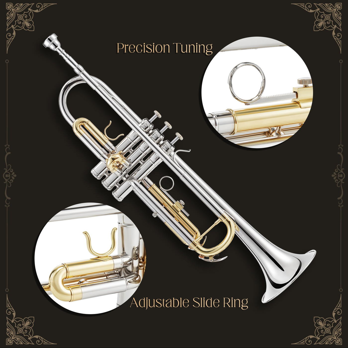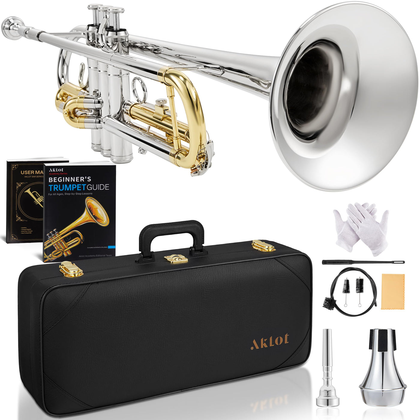 Experience Effortless Playability With The Aklot Hand-Hammered Bell Bb Trumpet. Designed For Smooth Valve Action And Responsive Tone, This Trumpet Features A Clear Lacquer Finish And Adjustable Tuning Slides For Precise Control. The Complete Beginner Set Includes A Premium Leather Case, Lesson Book, Trumpet Mute, And Cleaning Kit-Everything You Need To Start Your Musical Journey With Confidence. Whether Youre Learning Your First Scale Or Performing On Stage, This Trumpet Delivers Clarity, Comfort, And Craftsmanship In Every Note.