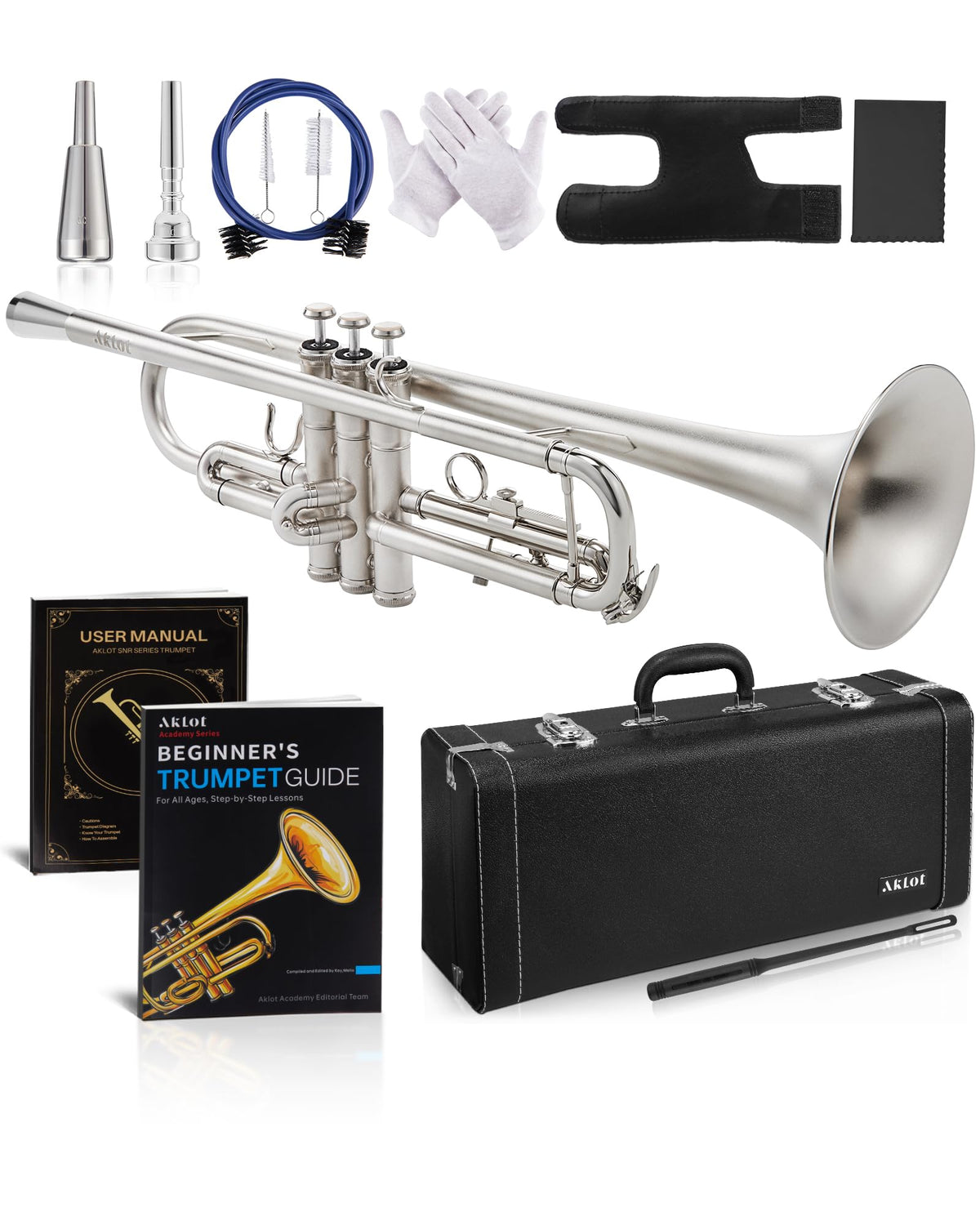 Experience Premium Playability With The Aklot Weighted Leadpipe Bb Trumpet. Designed For Discerning Players, It Features A Brushed Matte Silver Finish, Electroplated Nickel Pistons For Smooth, Reliable Action, And A Precision-Balanced Heavy Leadpipe That Enhances Tone Depth And Airflow Control. The All-Inclusive Accessory Kit Includes Both Weighted And Standard Mouthpieces, A Professional Leather Case, Leather Finger Guard, Lesson Book, Cleaning Kit, Polishing Cloth, Gloves, And A User Manual-Everything You Need To Play, Clean, And Store Your Instrument With Ease. Whether Youre Starting Out Or Stepping Up, This Trumpet Is Built To Support Confident Performance From Day One.