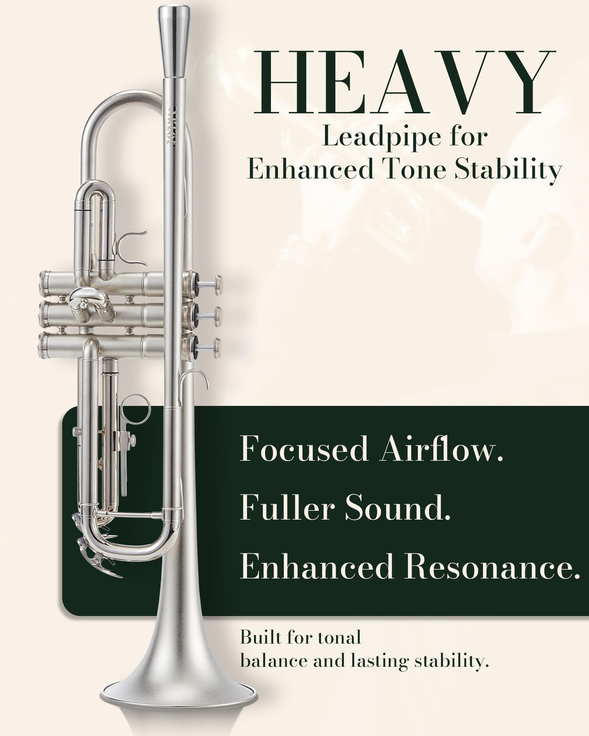 Aklot Weighted Leadpipe Bb Trumpet: Electroplated Nickel Pistons, Brushed Matte Silver, Leather Finger Guard, Weighted And Stand