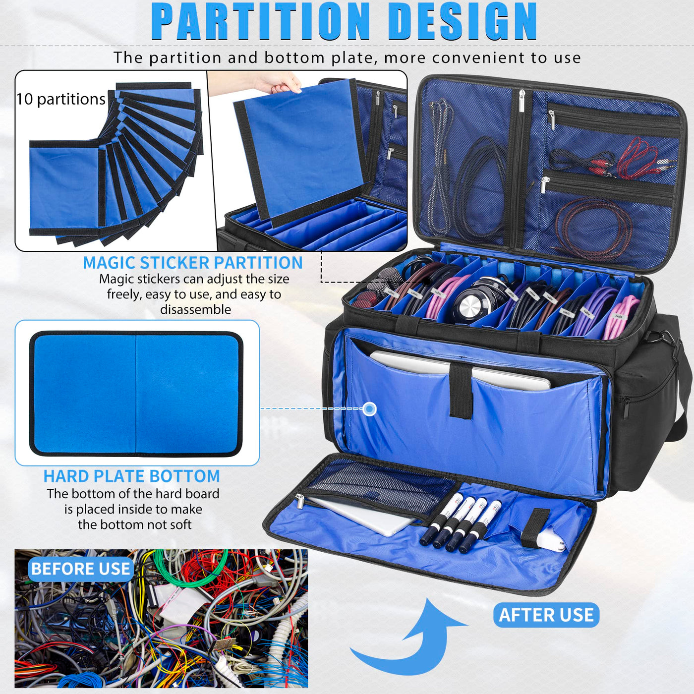 Akozlin Cable File Bag With Detachable Dividers Dj Gig Bag Cord Organizer Case For Laptop,Dj Gear,Music Equipment Accessories