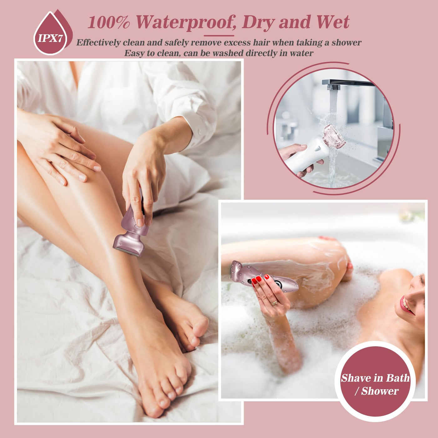 [Customized Shaving Without Residue]- Akunbem Women Electric Shaver Adopts 3 In 1 High-Speed And Sharp Blades, It Helps Safe And Clean Shave Hair On Your Body Etc In Minutes ,Such As Arms, Legs, Armpits And Bikini Line And Other Customized Shaving , Remove The Unwanted Hair Without Any Residue. | [Ipx7 Waterproof Design ]- Akunbem Womens Electric Razor With Ipx7 100% Waterproof Design Even In Shower Make It Convenient And Safe For Shaving And Can Cleaned In Water Under Running Water. The Detachable Razor Head Design Much Easier To Clean The Shaving Head Than Others ,You Can Press The Detachable Head Button, And Then Gently Pull It Out The Head To Clean Also Easy To Clean By Using The Brush Incidental. | [Efficiently & Painless Remove Hair ]- Akunbem Bikini Shaver Adopts Advanced Painless And Hypo-Allergenic Multifunctional Blade, Efficiently Removes Your Hair, Painless Hair Shaving And Skin-Friendly .Dry Or Sensitive Skin Can Also Be Used Well And Wet Or Dry To Use Are Very Convenient. | [Built-In Led Light & Low Noise Design] - Womens Electric Shaver Built-In Led Light Automatically Turns On Once The Shaver Begins To Operate, And It Can Aid You To See Everything Clearly Even The Smallest Hair, Ensuring Thorough Shave And Trimming.Low Noise Design Allows You A Comfortable Shaving Experience. | [Usb Quick Recharging & Led Visible Power Display] -This Womens Electric Razor With Usb Charging Cable (Adapter Not Included) Applicable To A Variety Of Charging Equipment.It Takes About 1.5 Hours Fully Charge To Allow 90 Minutes Shaving Time.Led Visible Power Display Indicates Battery Power And Reminds You To Charge.