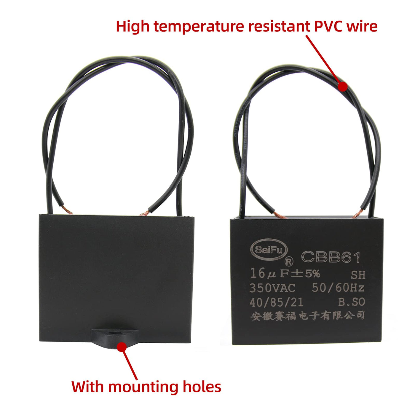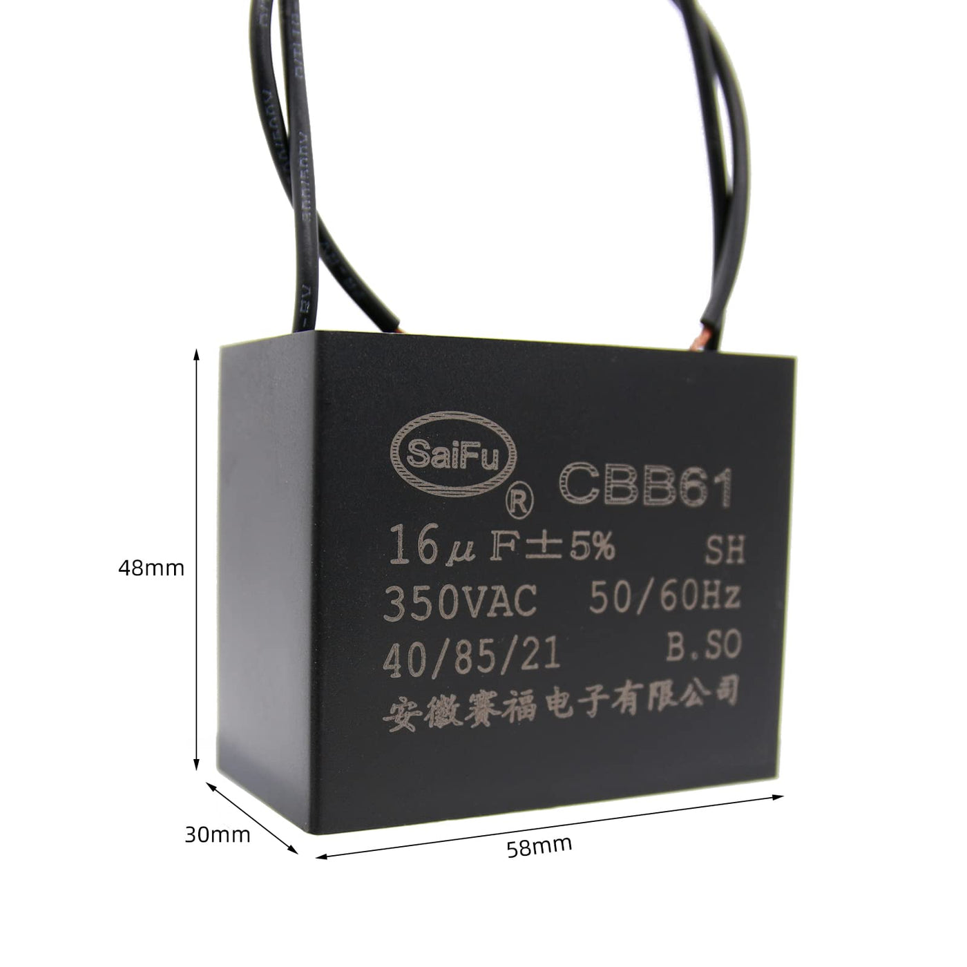 Akzytue Cbb61 Capacitor 16Uf 350V Ac Ceiling Fan 2 Wire 50/60Hz For Starting Electric Fan Generator Pump Motor