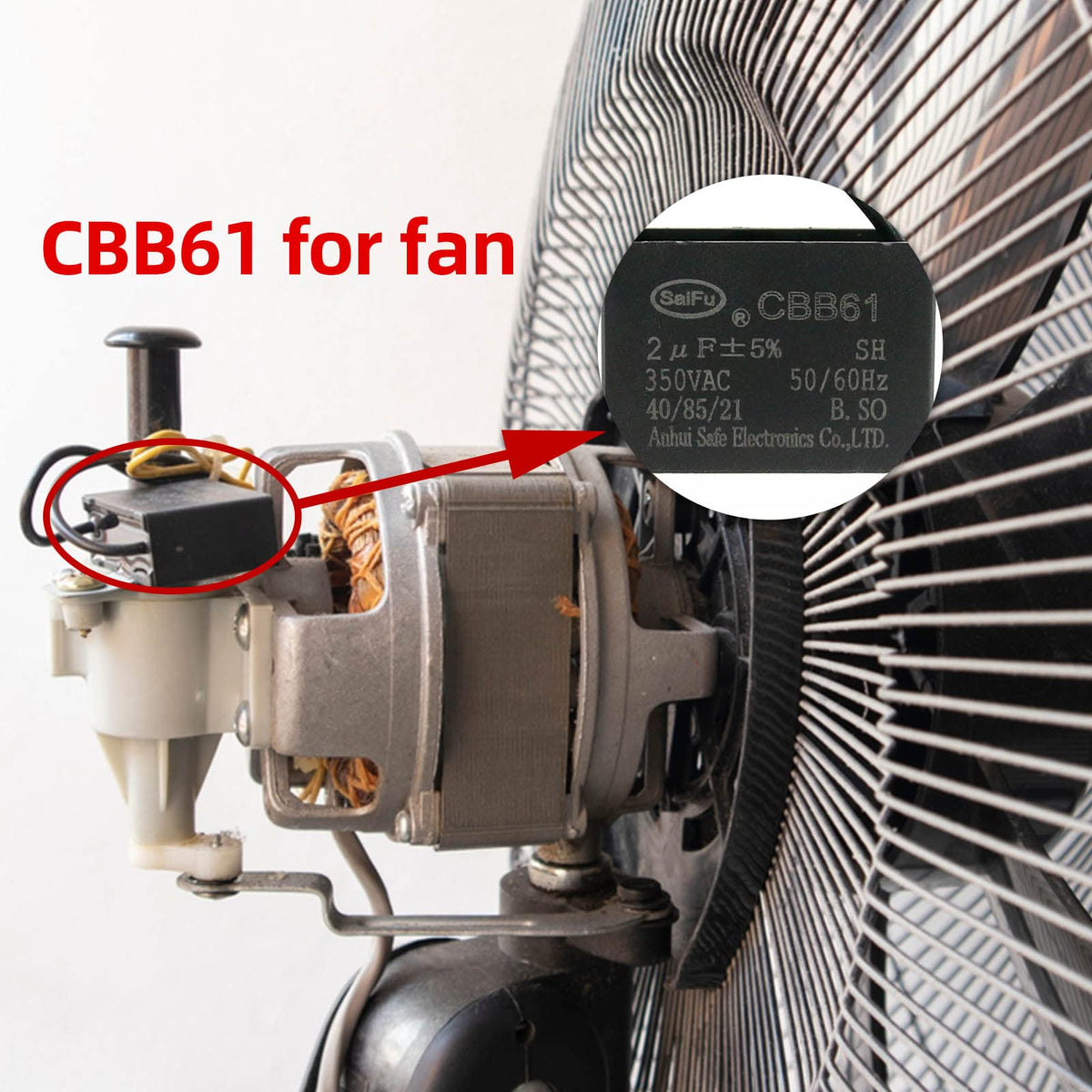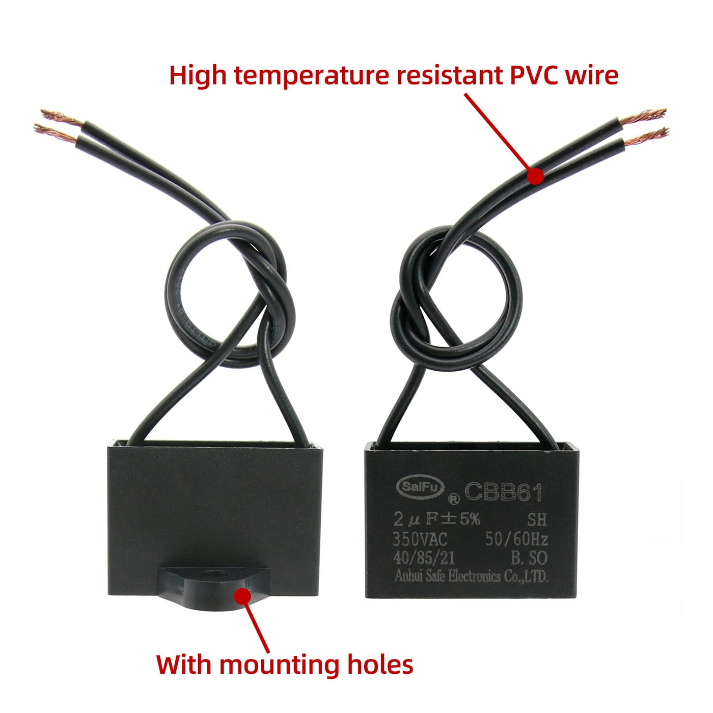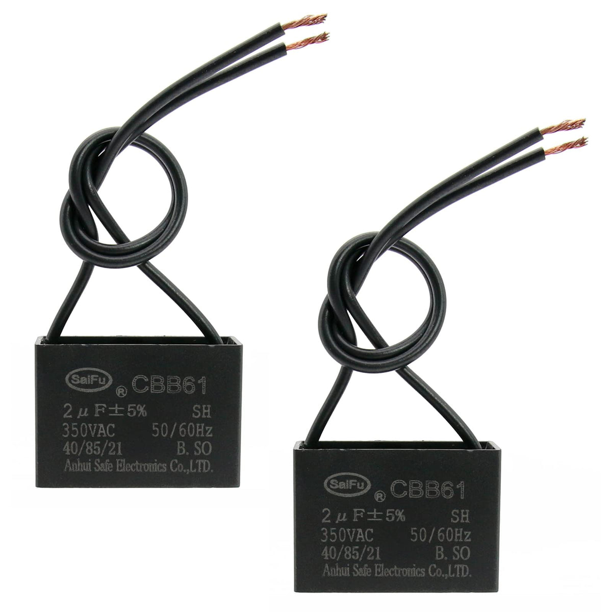 Akzytue Cbb61 Capacitor 2Uf 350V Ac Ceiling Fan 2 Wire 50/60Hz For Electric Fan Generator Pump Motor (2 Pack )