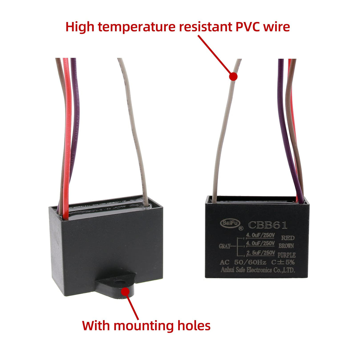 Akzytue Cbb61 Capacitor 4Uf+4Uf+2.5Uf 250V Ac Ceiling Fan 4 Wire 50/60Hz For Starting Electric Fan Generator Pump Motor