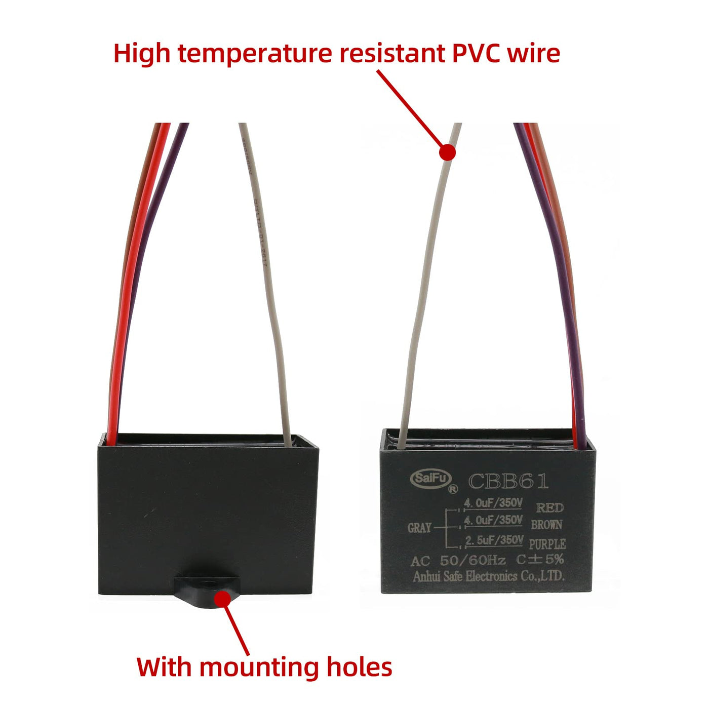 Akzytue Cbb61 Capacitor 4Uf+4Uf+2.5Uf 350V Ac Ceiling Fan 4 Wire 50/60Hz For Starting Electric Fan Generator Pump Motor