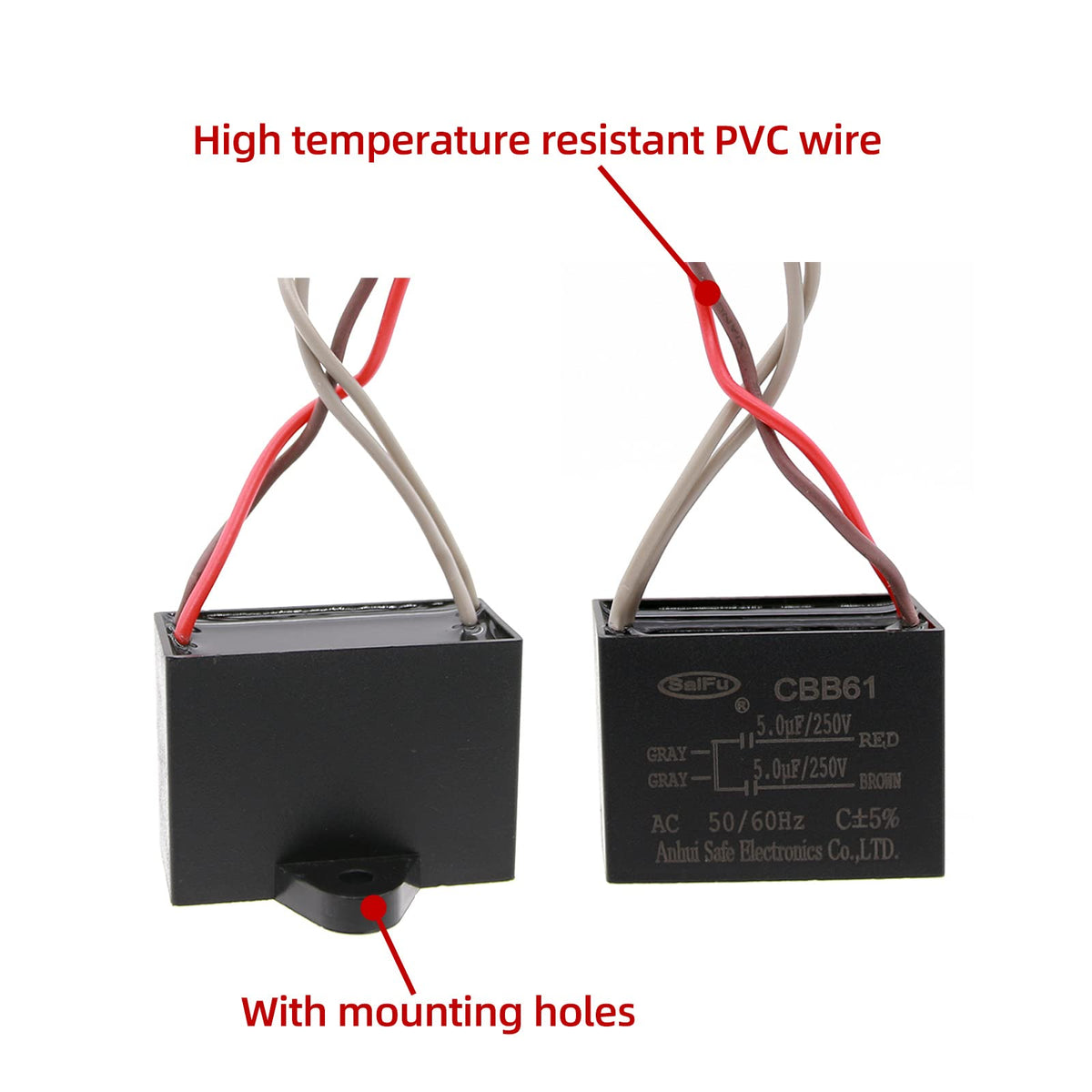 Akzytue Cbb61 Capacitor 5Uf+5Uf 250V Ac Ceiling Fan 4 Wire 50/60Hz For Starting Electric Fan Generator Pump Motor
