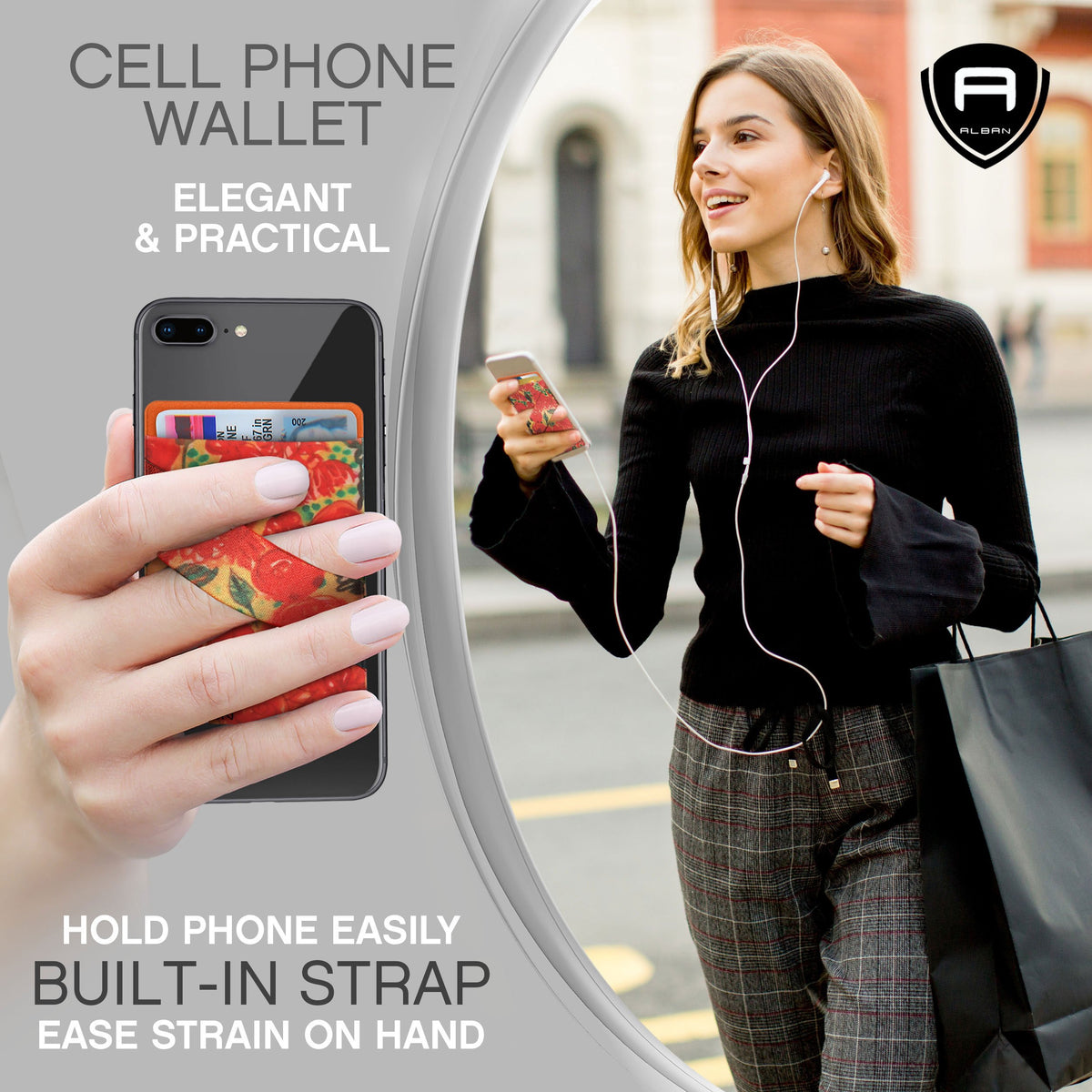Q: What smartphones are compatible with the Alban Credit Card Holder?A: The Alban Credit Card Holder is designed to securely attach to most smartphones or phone cases, including popular models such as iPhone and Samsung, as well as other Android devices.