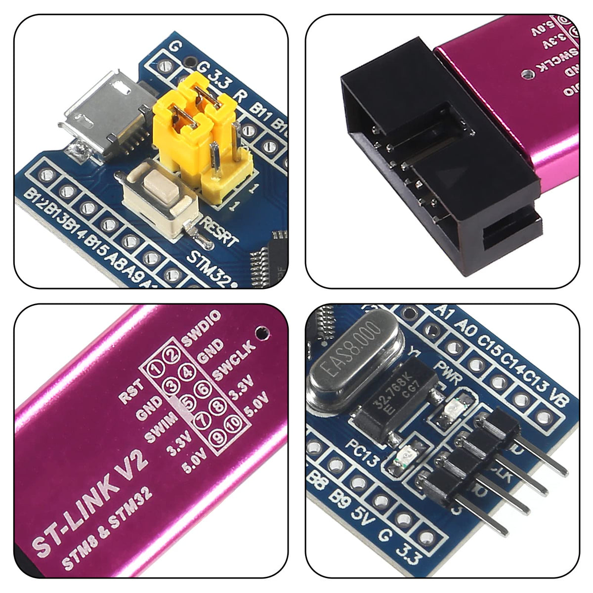 Q: What is the ST-Link V2 Programming Unit Emulator used for?A: The ST-Link V2 Programming Unit Emulator is designed for debugging and programming STM32 and STM8 microcontrollers. It supports a full range of STM32 SWD debugging interfaces, making it suitable for development environments like IAR and STVD.