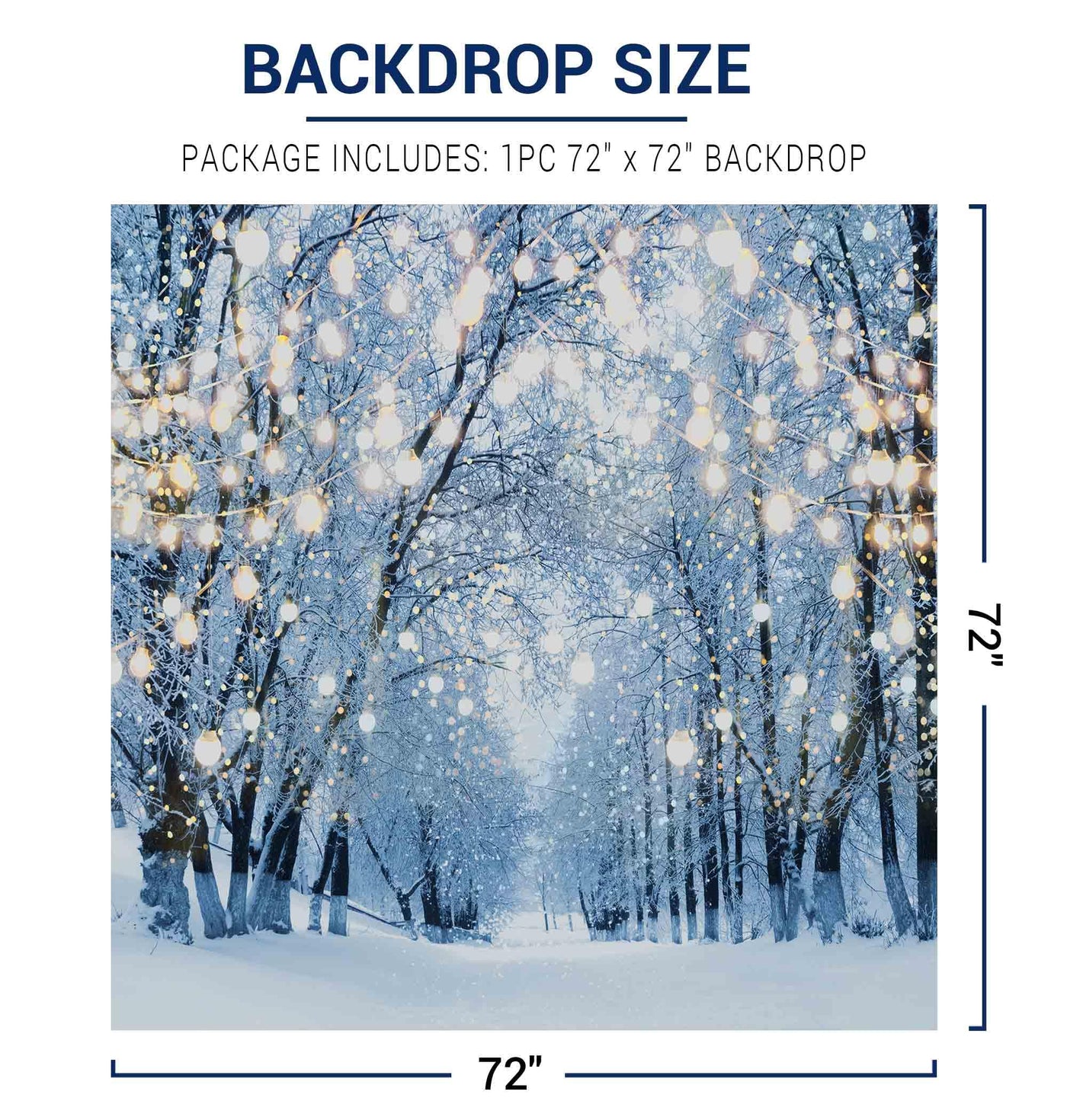 Q: What are the dimensions of the Allenjoy Winter Forest backdrop?A: The Allenjoy Winter Forest backdrop measures 6 x 6 feet, making it an ideal size for various photography and decoration needs.