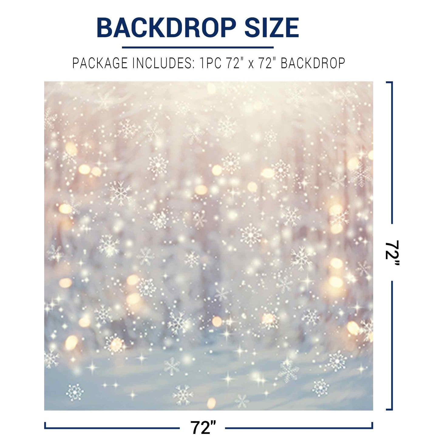 Q: What are the dimensions of the Allenjoy Winter Wonderland backdrop?A: The Allenjoy Winter Wonderland photography backdrop measures 6 x 6 feet (72 x 72 inches), making it ideal for various events and photo shoots.