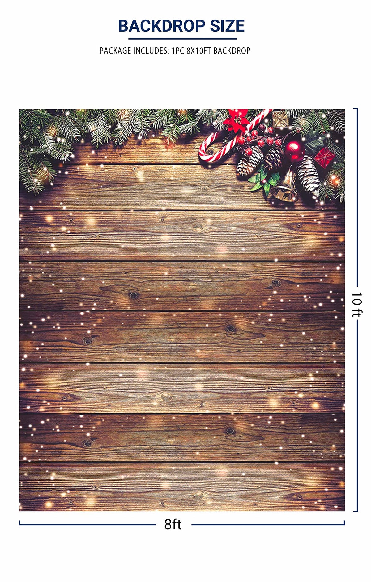 Q: What are the dimensions of the Allenjoy Snowflake Gold Glitter Christmas Backdrop?A: The Allenjoy backdrop measures 8 feet by 10 feet, providing ample space for various photography needs and event decorations.