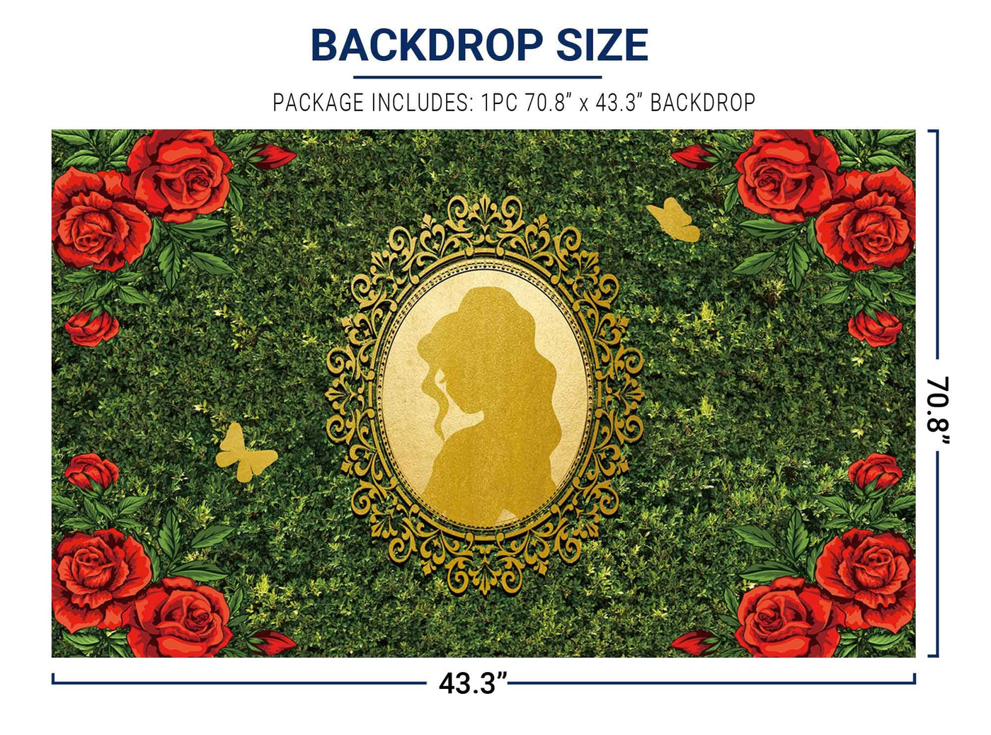 Q: What is the size of the Allenjoy Beauty Flower Garden Backdrop?A: The backdrop measures 70.8 inches by 43.3 inches, making it a suitable size for various events like birthday parties, baby showers, and photo booths.