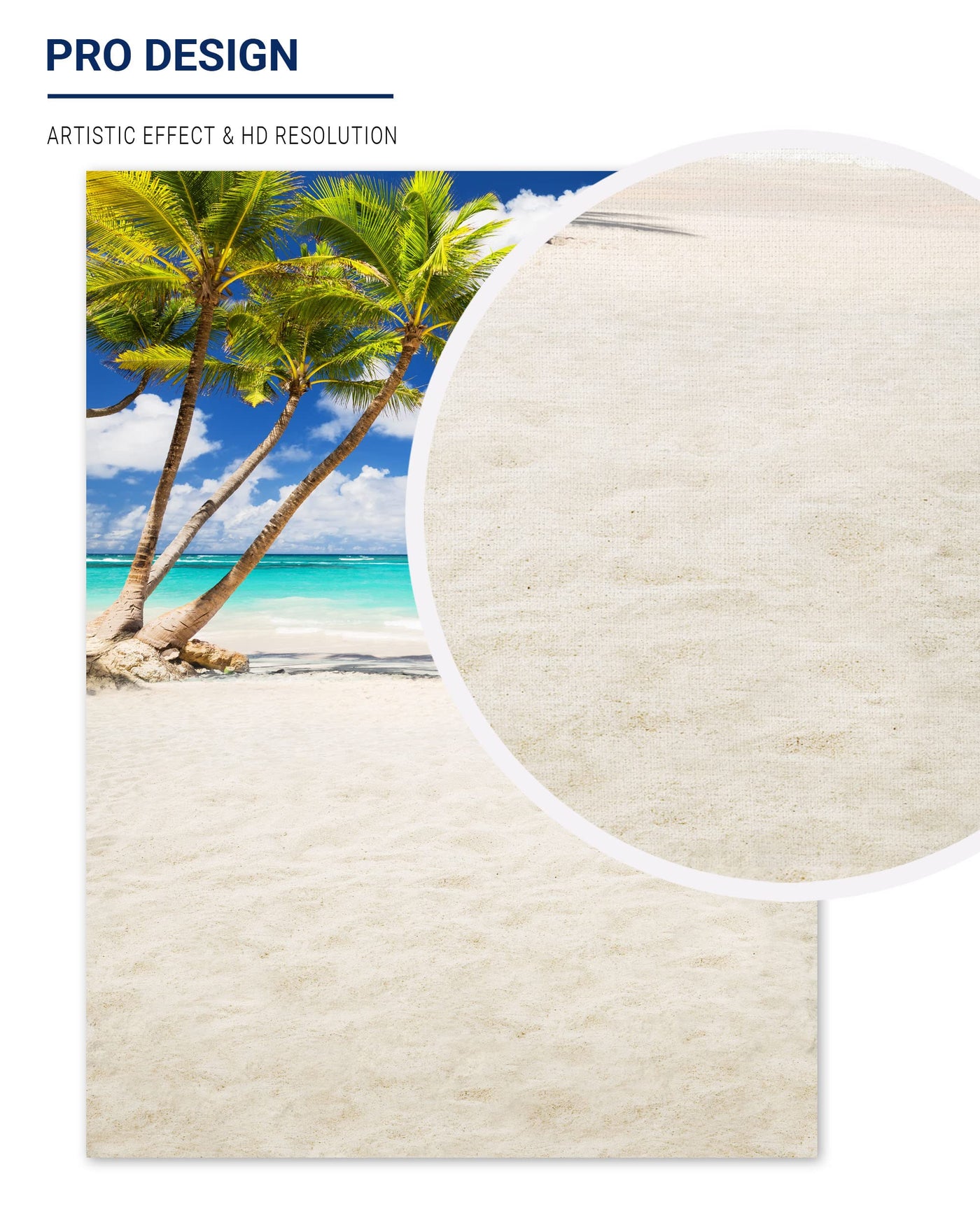 Q: What are the dimensions of the Allenjoy Tropical Seaside Beach Backdrop?A: The backdrop measures 6x8 feet (72 inches by 96 inches), making it suitable for a variety of events and photo shoots.