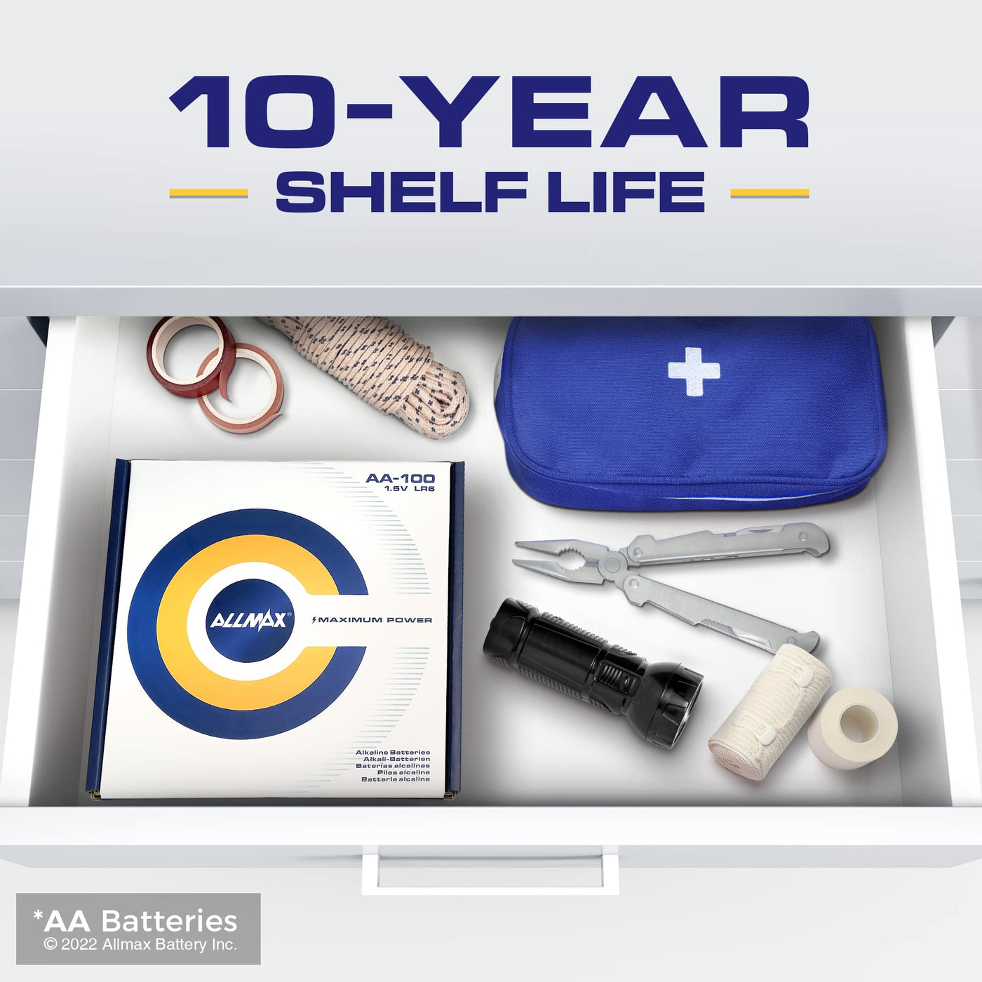 Q: How long do Allmax AA batteries last?A: Allmax AA batteries are considered ultra long-lasting and can maintain power for up to 10 years in proper storage. This makes them suitable for long-term storage and emergency preparedness kits.