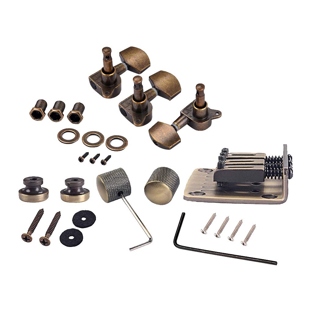 Description:- Kits Combined With The Best Craftsmanship For 3-String Guitars- Includes A Bridge, 1R2L Tuning Pegs, 2 Control Knobs, 2 Strap Locks, 2 Keys And Screws, Washers- Perfect For 3 String Cigar Box Guitar, Replace Your Worn Parts.- Material: Alloy.- Bronce Color.Size Chart:Bridge: Approx. 1,654 X 1,969 In.Package Includes:1 Set Of 3 Strings For Guitar.