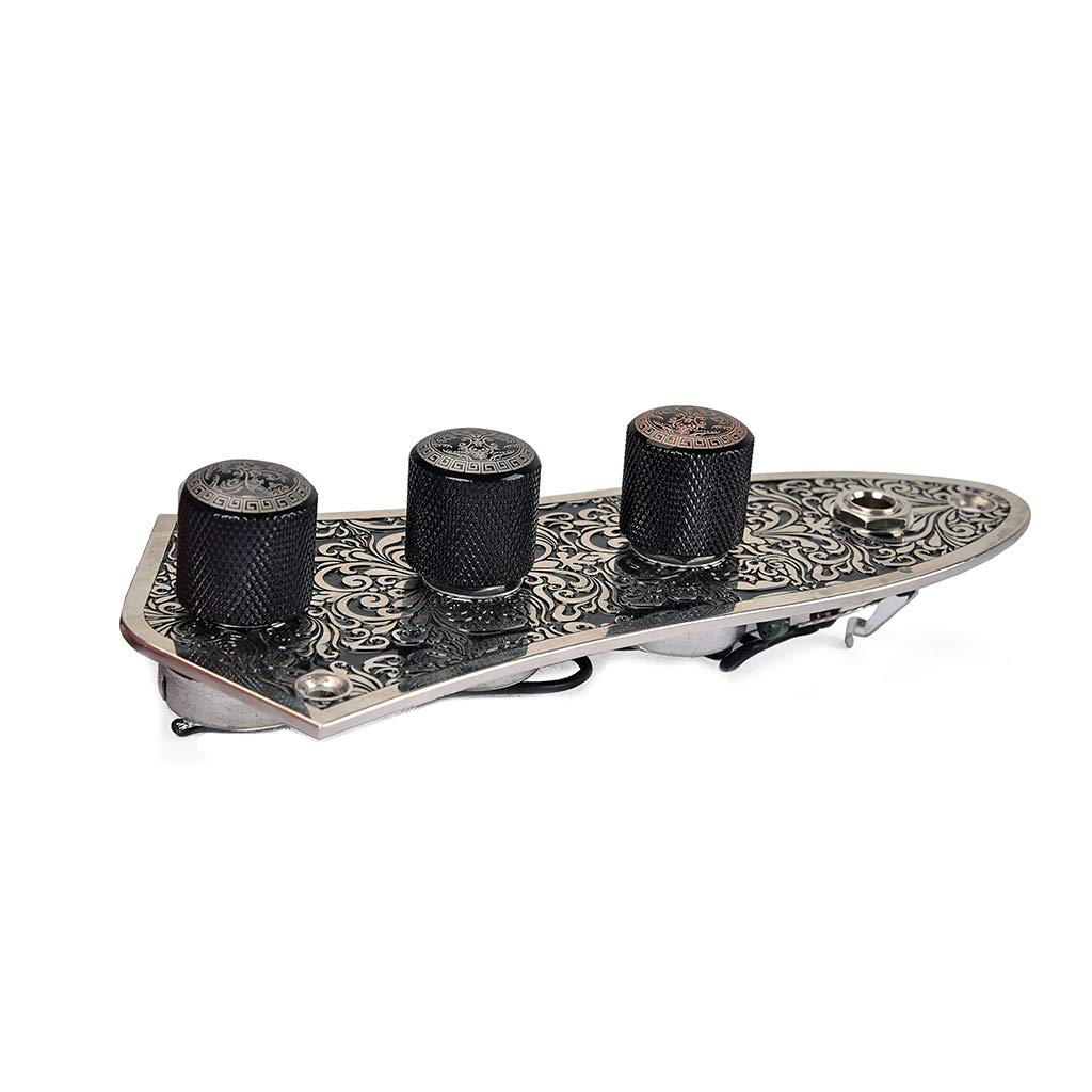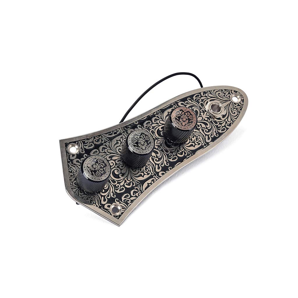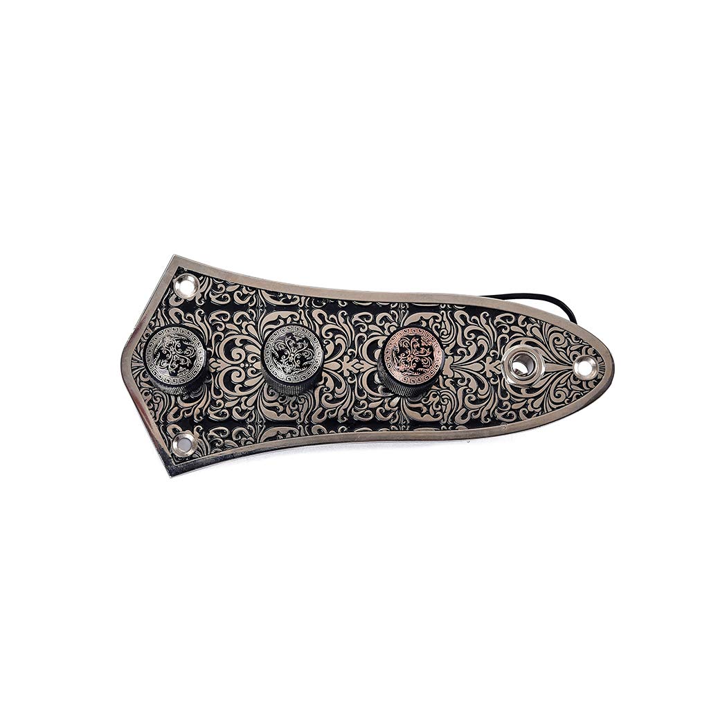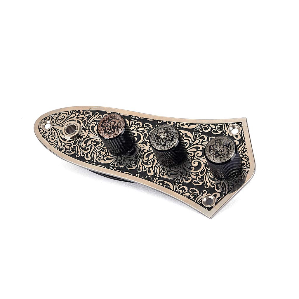 Note:There Is A Little Difference Between The Color And Objectdescription:1.Pre-Wired Alloy Carved Control Plate Set For Jazz Bass Jb Style Guitar2.Wired Fully Loaded Control Plate Is Fully Loaded And Installed With Knobs, Pots, Jack And Wires3.Perfect General Replacement Part4.Easy To Install5.With Classical Decorative Pattern, Looks Beautifulspecification:Material:Zinc Alloy And Coopercolor:Blacksize: Approx 152 X 69.2Mm/5.91 X 2.76 Inch (L X W)Mounting Hole Dia: Approx. 4Mm/0.16 Inchknob Diameter: About 20Mm/0.79 Inchweight:174Gpackage Includes:1 Set Jazz Bass Control Plate
