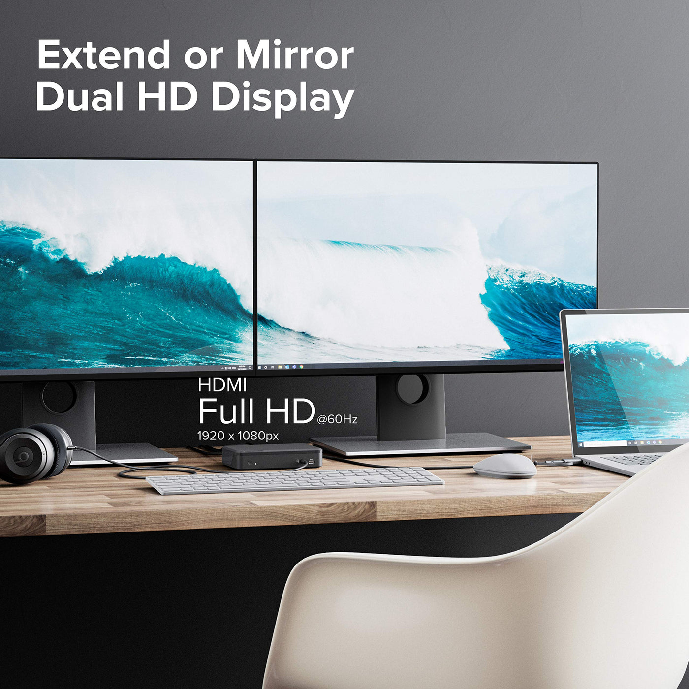 Connected Ports: The Twin Hd Docking Stations Support Dual Hdmi Monitor At 1080P@60Hz For Both Windows And Mac Laptops. It Also Features 1 X Usb-C 3.1 Gen 1 (5Gbps), 1 X Usb-A 3.0 (5Gbps) With Bc 1.2, 3 X Usb-A (5Gbps), 1 X Audio/Microphone, 1 X Gigabit Ethernet (10/100/1000Mbps) And 1 X Kensington Lock Slot & 1 X Nano Lock Slot | Dual 1080 Display: The Twin Hd Docking Stations Improves Your Productivity By Providing Outputs Of Up To 1920 X 1080@60Hz For Up To Two Hdmi Monitors. | Usb-C & Usb-A Compatibility: The Docking Station Expands The Capabilities Of Your Windows Or Mac Laptop By Adding The Capability To Support Two Full Hd Monitors Via The Hdmi Ports, Additional Usb-C And Usb-A Peripherals, Wired Ethernet Network, Mic & Speakers And More To Add Versatility To Your Working Environment | The Dock Also Comes With A Universal Host Cable That Is Designed With An Attached Usb-C To Usb-A Adapter To Accommodate Both Usb-C And Usb-A Laptops | Duthd Does Not Charge A Laptop, For Power Delivery Functionality To Charge Your Laptop Check Out Duthdpr.