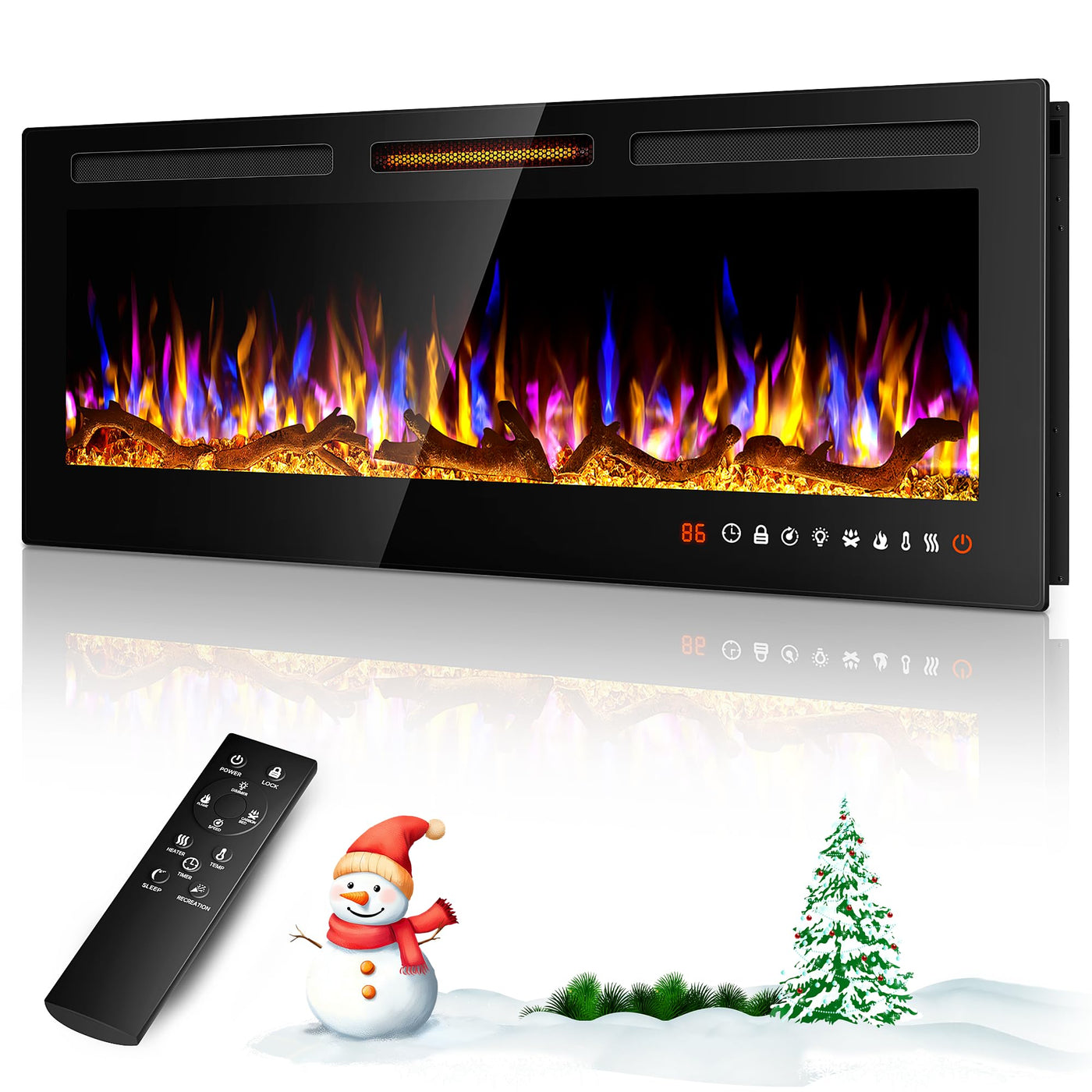 Alpaca 50'' Slim Electric Fireplace Recessed And Wall Mounted,Wall Fireplace And Freestanding Linear Fireplace, With Remote Cont