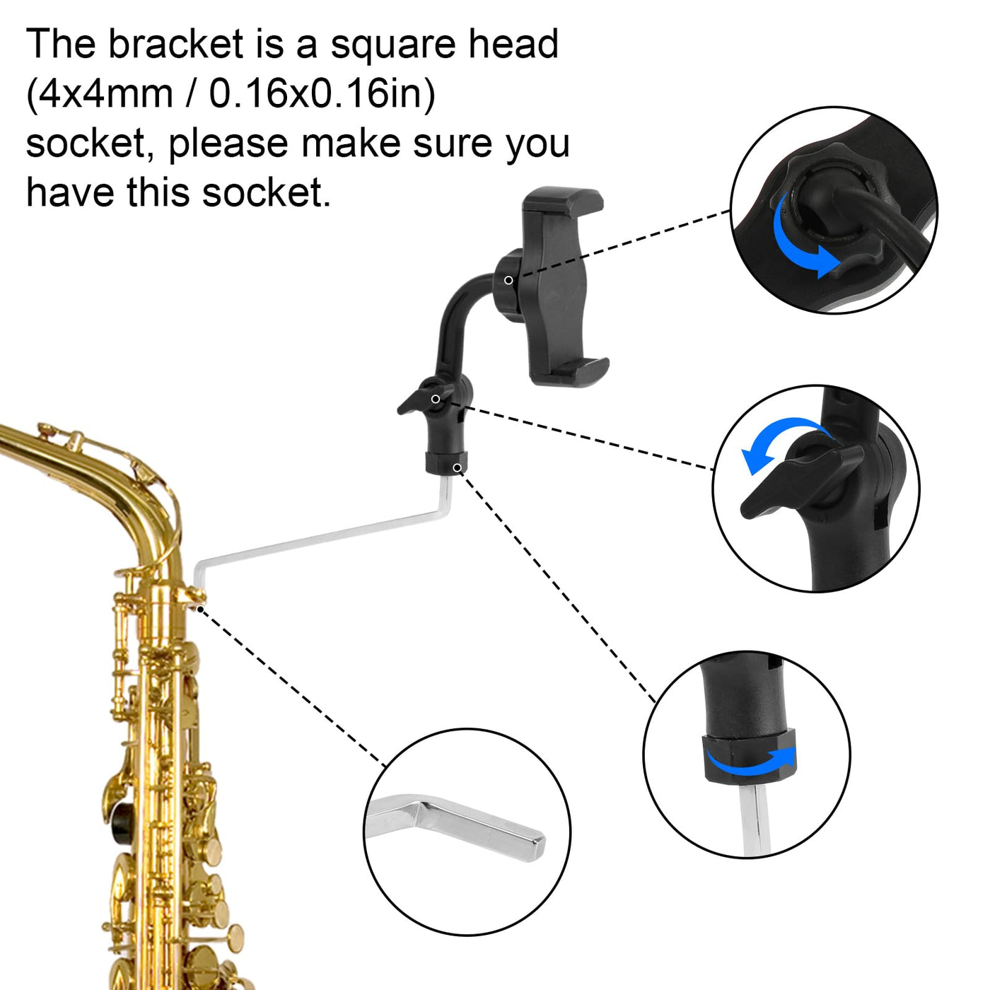 Alto Saxophone Phone Holder, Sax Lyre Music Clip 4Mm Square Head Saxophone Phone Mount To Fix Your Phone Securely Easy To Read M
