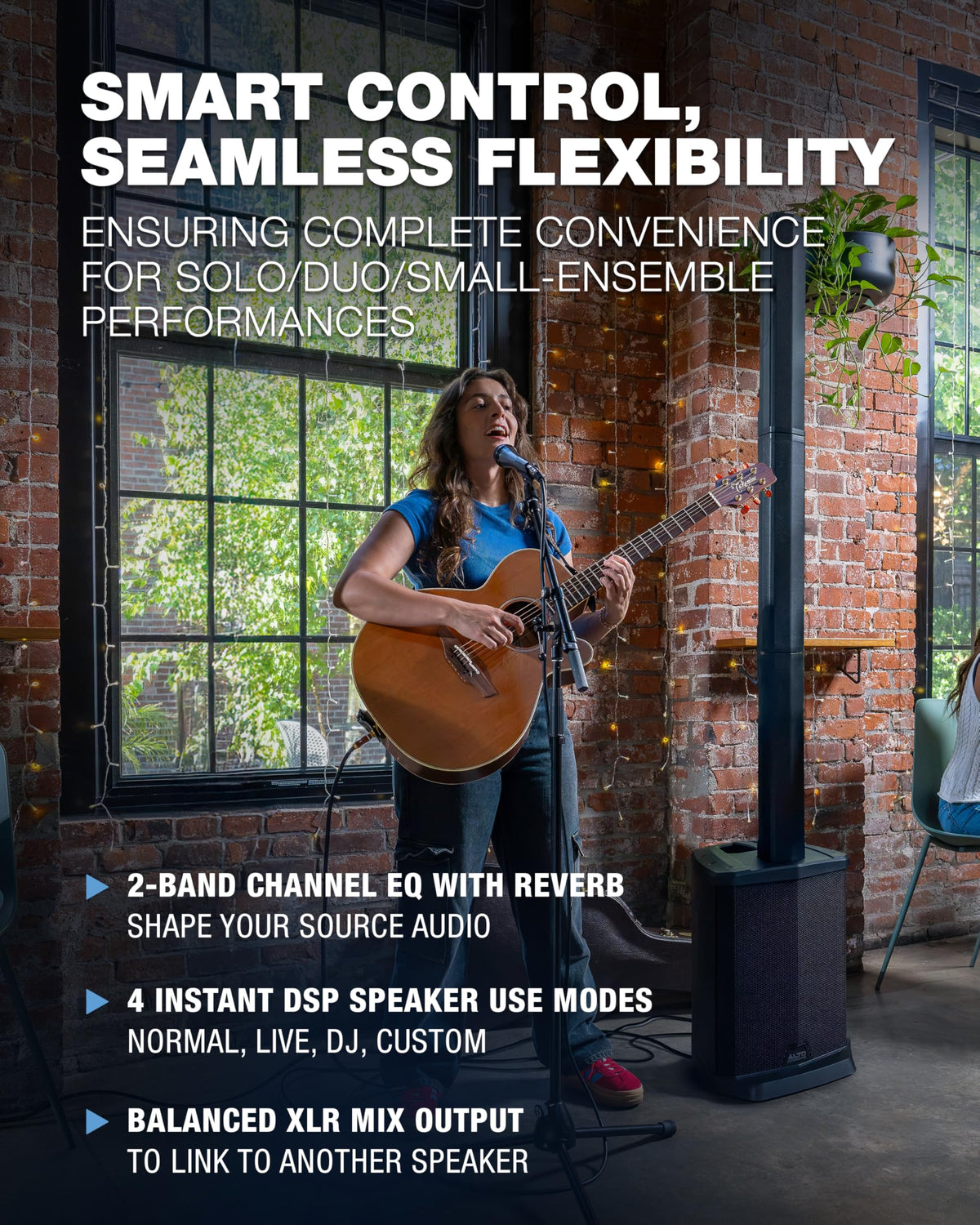 Alto Ts108C Is A Compact, All-In-One Column Array Pa Speaker Designed To Deliver Clear, Room-Filling Sound Without The Complexity Of Traditional Box Speakers. This New Addition To The Professional-Grade Alto Truesonic Speaker Series Boasts Up To 600 Watts Of Crystal-Clear Audio Into A Slim, Portable Tower, Making The Ts108C The Optimal Solution For Gigging Musicians, Event Djs, And Venues Looking For High-Performance Sound In A Small Footprint. Its Integrated Eight-Inch Subwoofer, Three-Channel Digital Mixer With Reverb, And Bluetooth Streaming Make It Quick And Easy To Plug In, Power Up, And Play. Select The Right Sonic Profile For Any Musical Style And Live Setting With Ts108Cs Four Instant Dsp Application-Specific Speaker Modes (Normal, Live, Dj, And Custom). Whether Performing A Solo Set In A Small Caf , Leading A High-Energy Spin Class At The Gym, Or Djing A Wedding Reception Of 200 Guests, The Ts108C Makes Setup And On-The-Fly Sound Adjustments Effortless With Intuitive Mixer Controls. Modify Your Sound Via Bluetooth Using The Included Alto Pro App For Uninterrupted Flow. Durable, Travel-Ready, And Complete With A Carrying Bag, Ts108Cs Advanced Column Array Design Projects Far And Wide (120X30 Coverage).