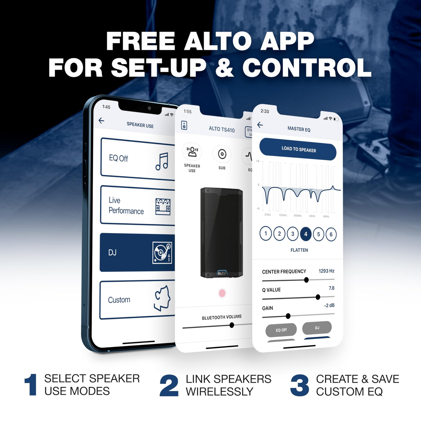 Alto Ts410 2000W 10 Powered Pa Speaker With 3 Channel Mixer, Bluetooth Streaming, Wireless Loudspeaker Linking, Dsp App