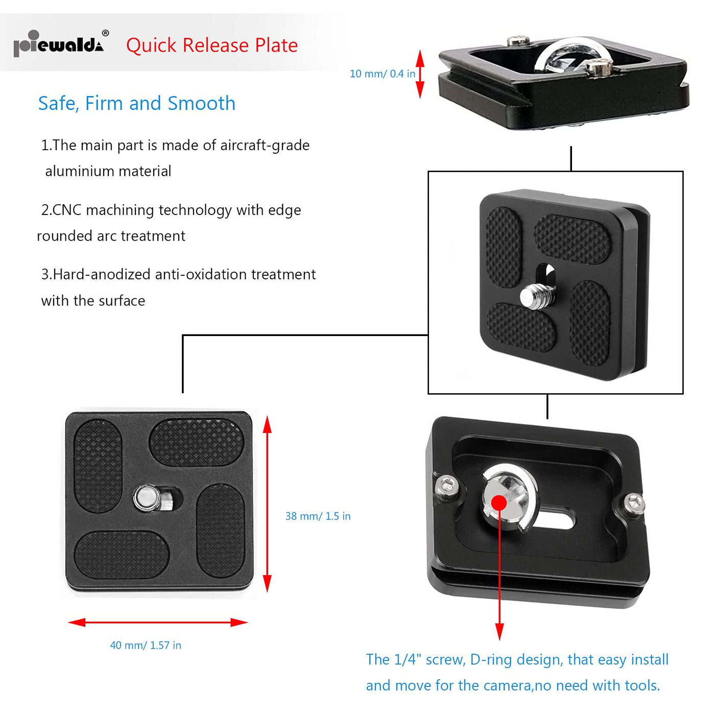 Aluminum Metal Quick Release Plate With 1/4' D Ring Screw/Slotted Screw And 3/8' To 1/4' Mount Screw Adapter, Niewalda Tripod Mounting Plate Fits Arca Swiss For Slr Camera Tripod Ball Head (Pu 40)